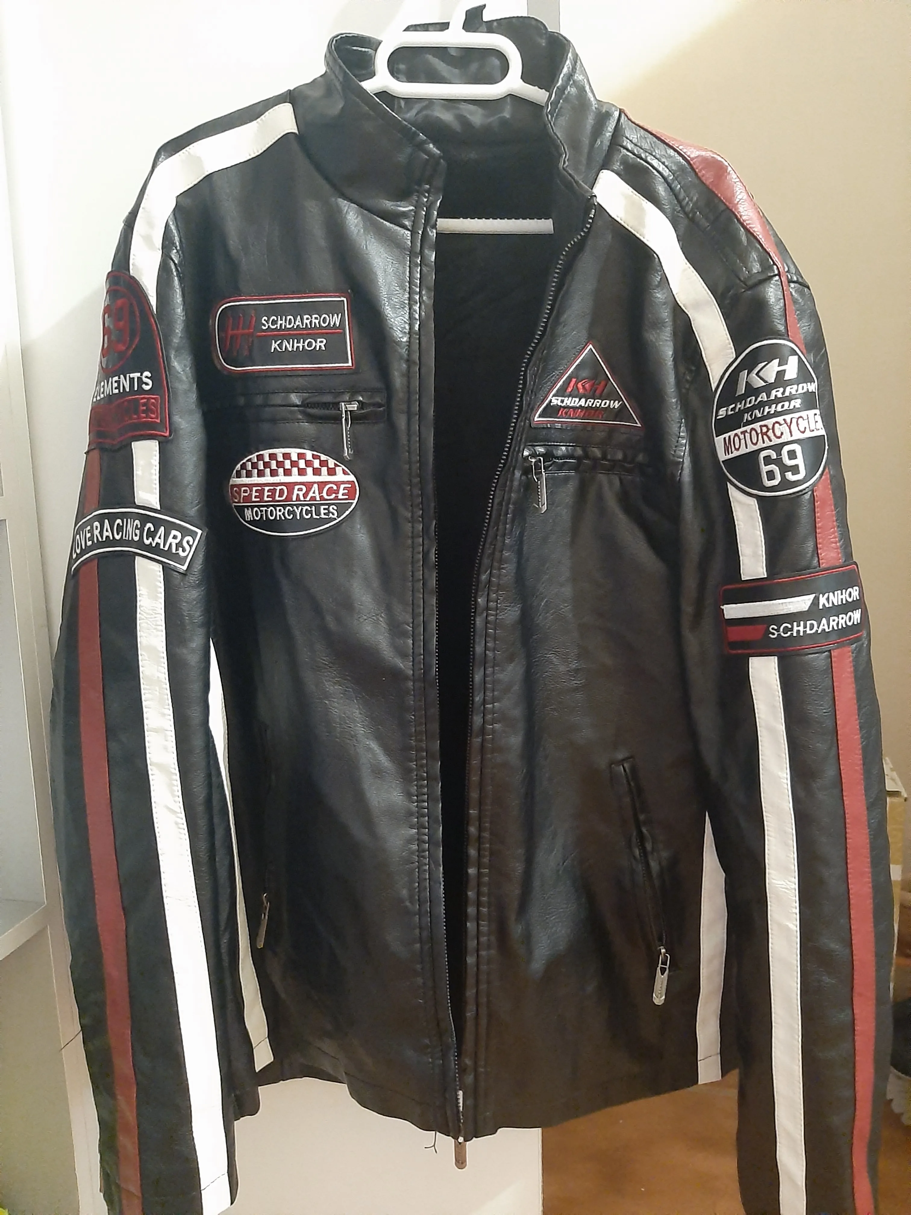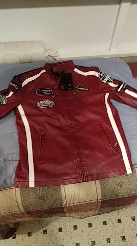 Красивая мотоциклетная куртка, но это не кожа! Я очень разочарован этим, но все хорошо сделано... Вот почему я ставлю 4 * несмотря на все