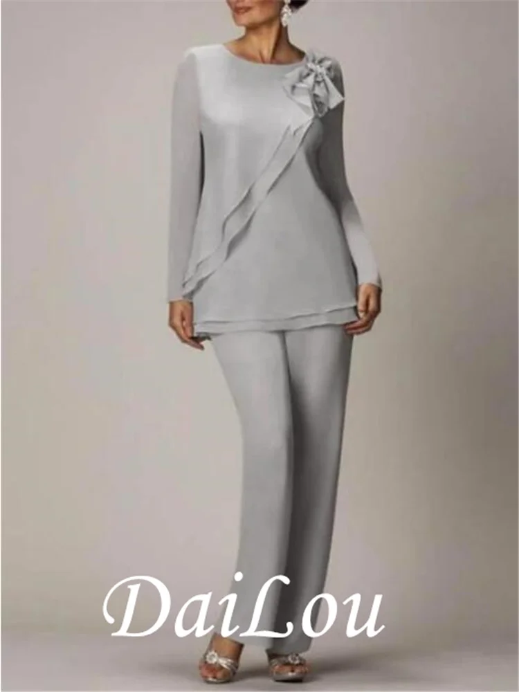 Брючный костюмкомбинезон платье для матери невесты элегантный драгоценный вырез длина в пол шифоновый с длинным рукавом и бантом (s) 2022