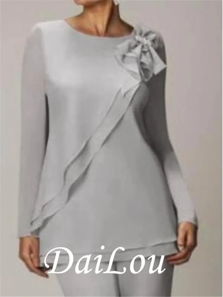 Стиль: элегантныйСилуэт: брючный костюм/комбинезонПодол/шлейф: длина в полВырез: круглый вырезТкань: шифонЗастежка: без застежкиДлина рукава: длинный рукавУкрашение: бант (ы)Упаковка: нет