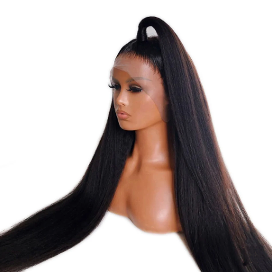 Yaki, синтетические волосы, кружевные передние парики для женщин, натуральные, черные, яркие, фиолетовые, синие, длинные, прямые, кружевные Парики Yaki, средняя часть