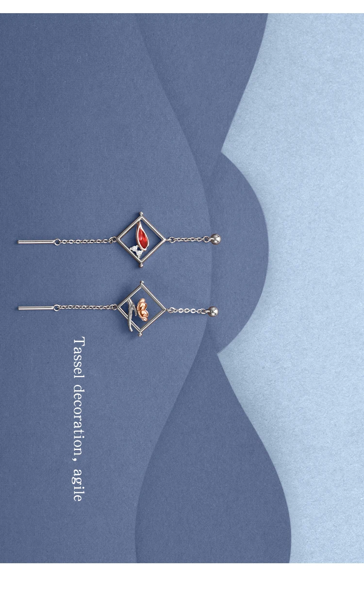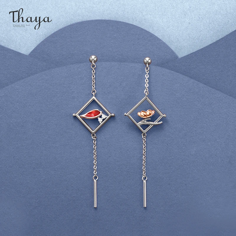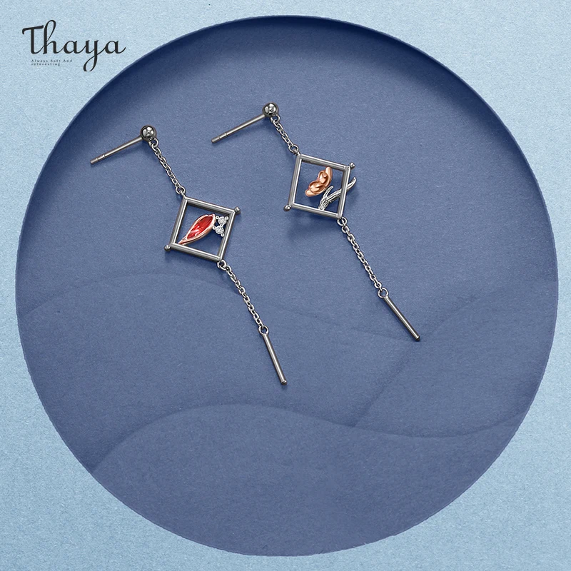 Женские посеребренные серьги-гвоздики Thaya, квадратные серьги-гвоздики с красным капельным маслом, элегантные ювелирные украшения из драгоценных камней