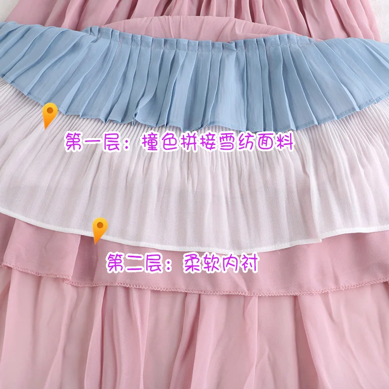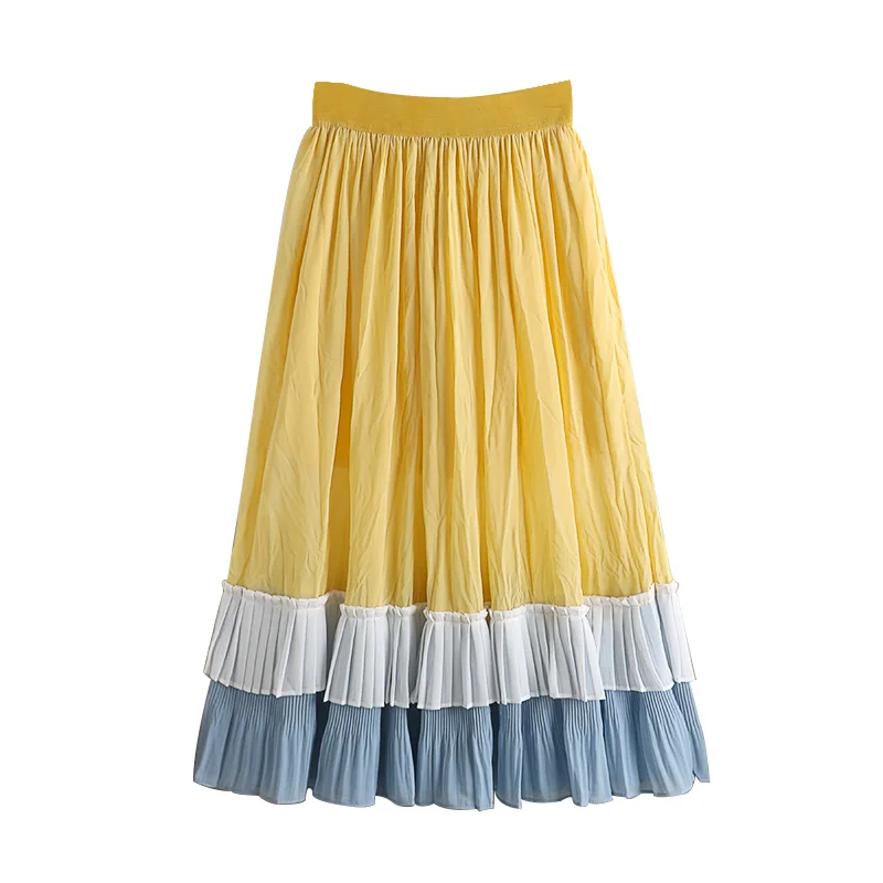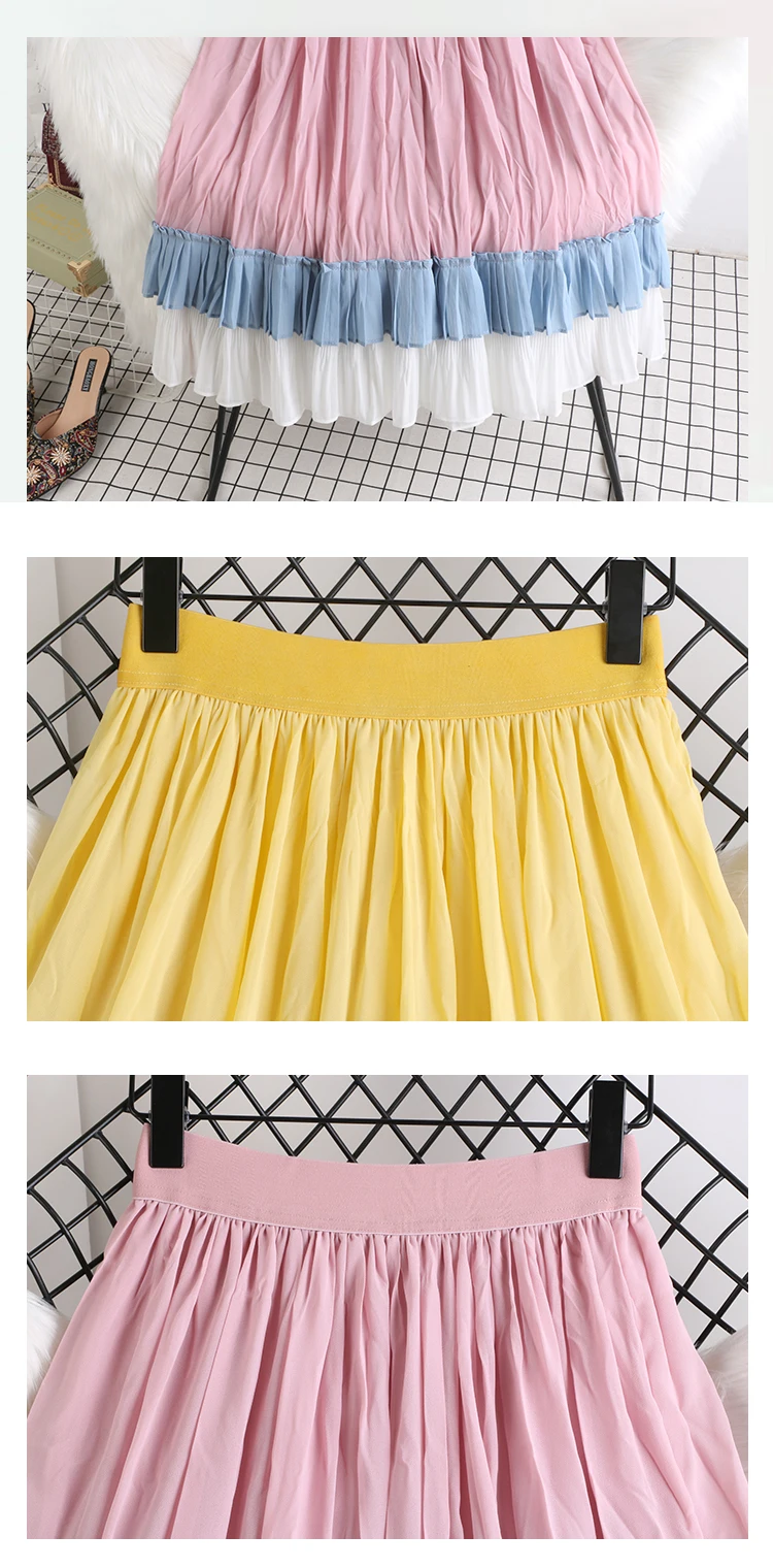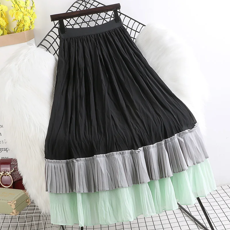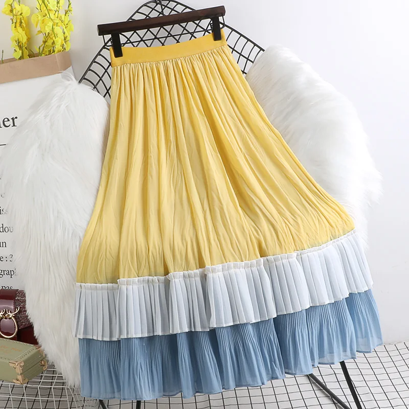 Женская шифоновая юбка с поясом на резинке, разноцветная плиссированная юбка средней длины, каскадная мягкая длинная юбка, осень 2021