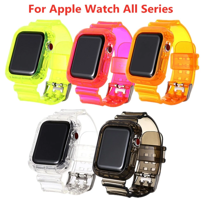 Прозрачный флуоресцентный цветной ремешок для Apple Watch 75432, спортивный Воздухопроницаемый браслет из ТПУ для iWatch 38404244 мм, ремешок