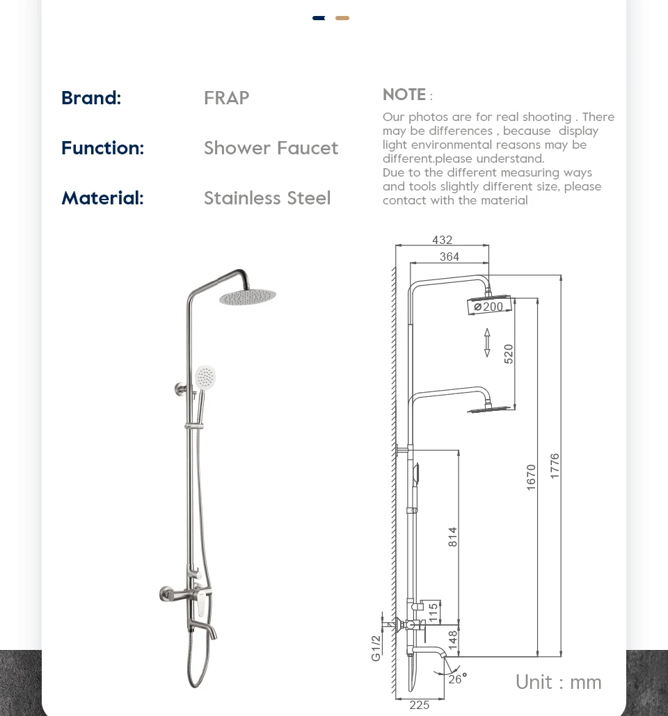 Смеситель для душа Frap F2448, из нержавеющей стали с тропическим душем