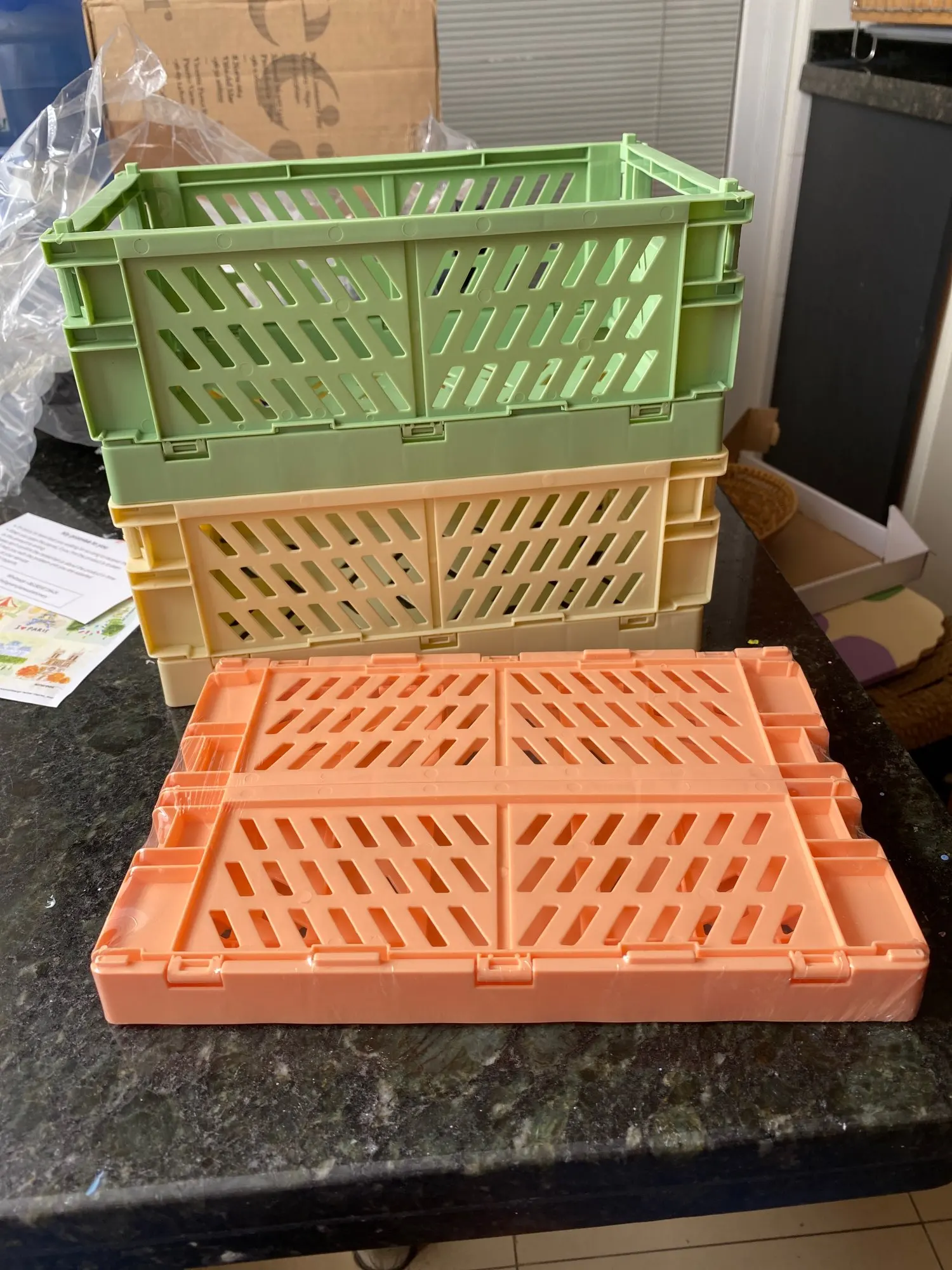 Это было на самом деле больше, чем я ожидал. Вмещает много вещей. Функция складывания не будет иметь большого значения, но это хорошо. Немного сложно складывать/раскладывать, и пластик ощущается немного дешево, но все равно хорош по цене. Доставка в Нью-Йорк занимает 23 дня.