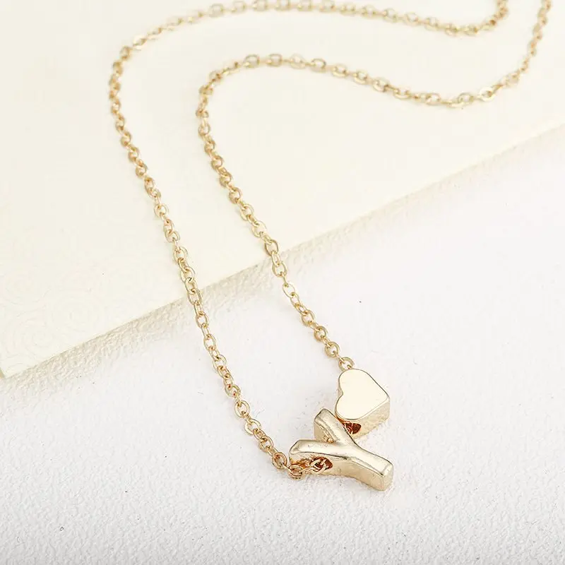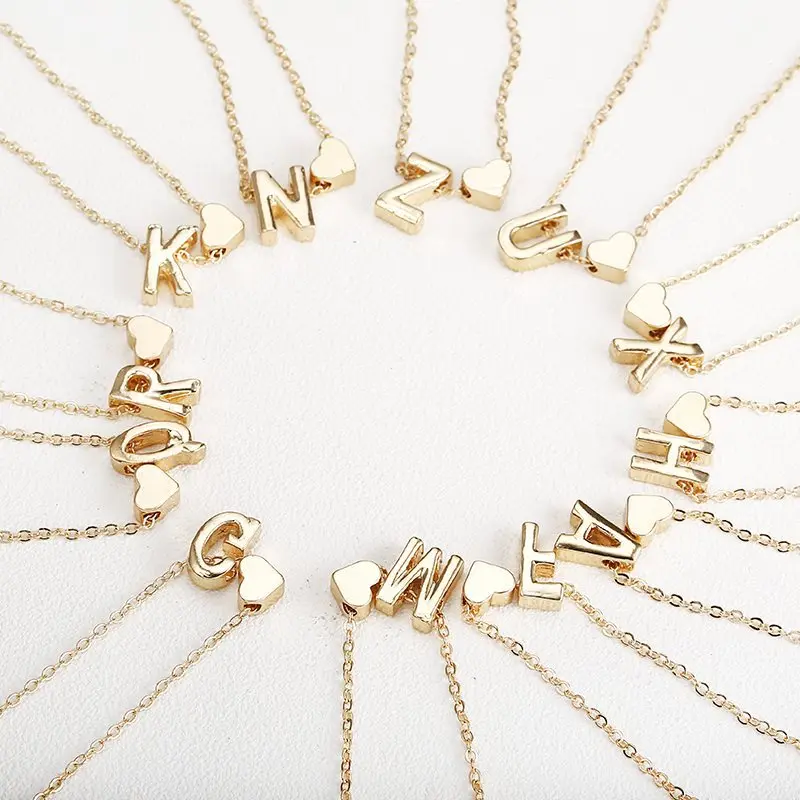 Модные маленькие сердце лакомство, ожерелье цвета: золотистый, серебристый Цвет A-Z письмо имя колье для женщин, изготовлено вручную кулон ювелирное изделие, подарок