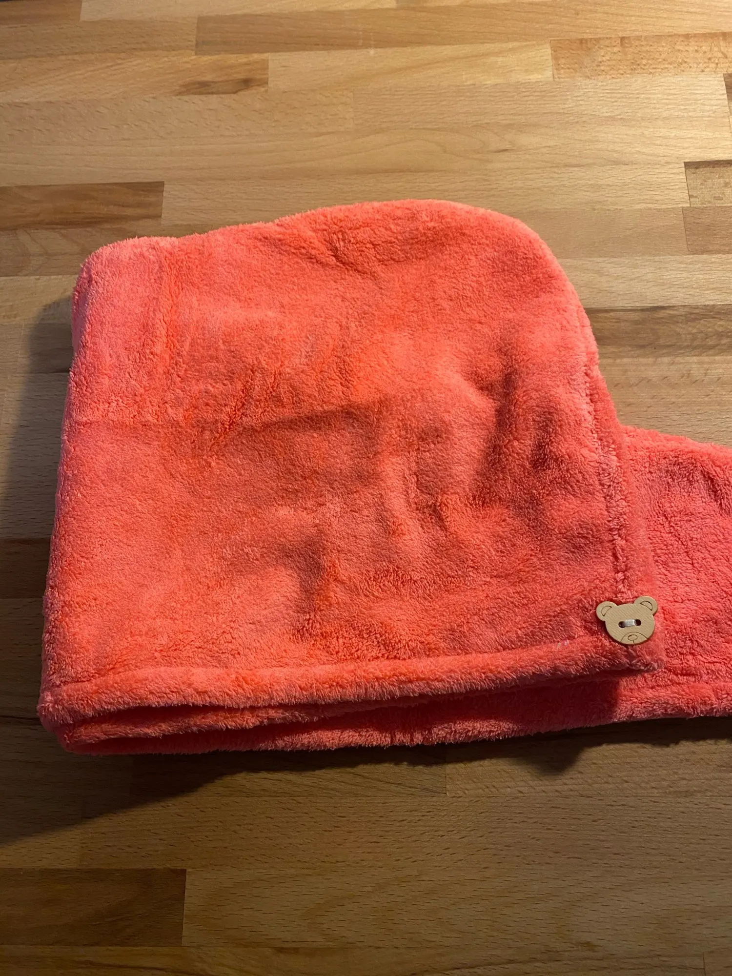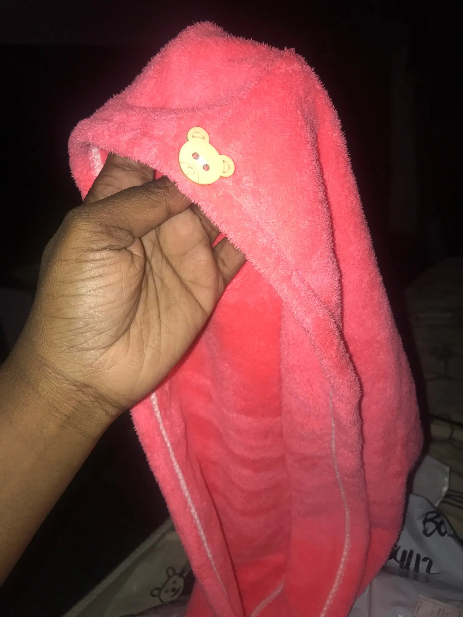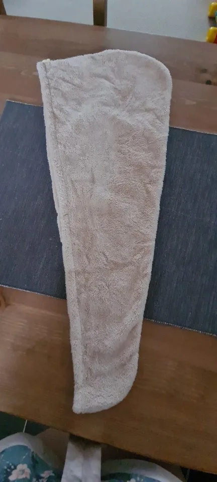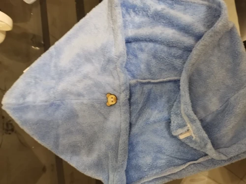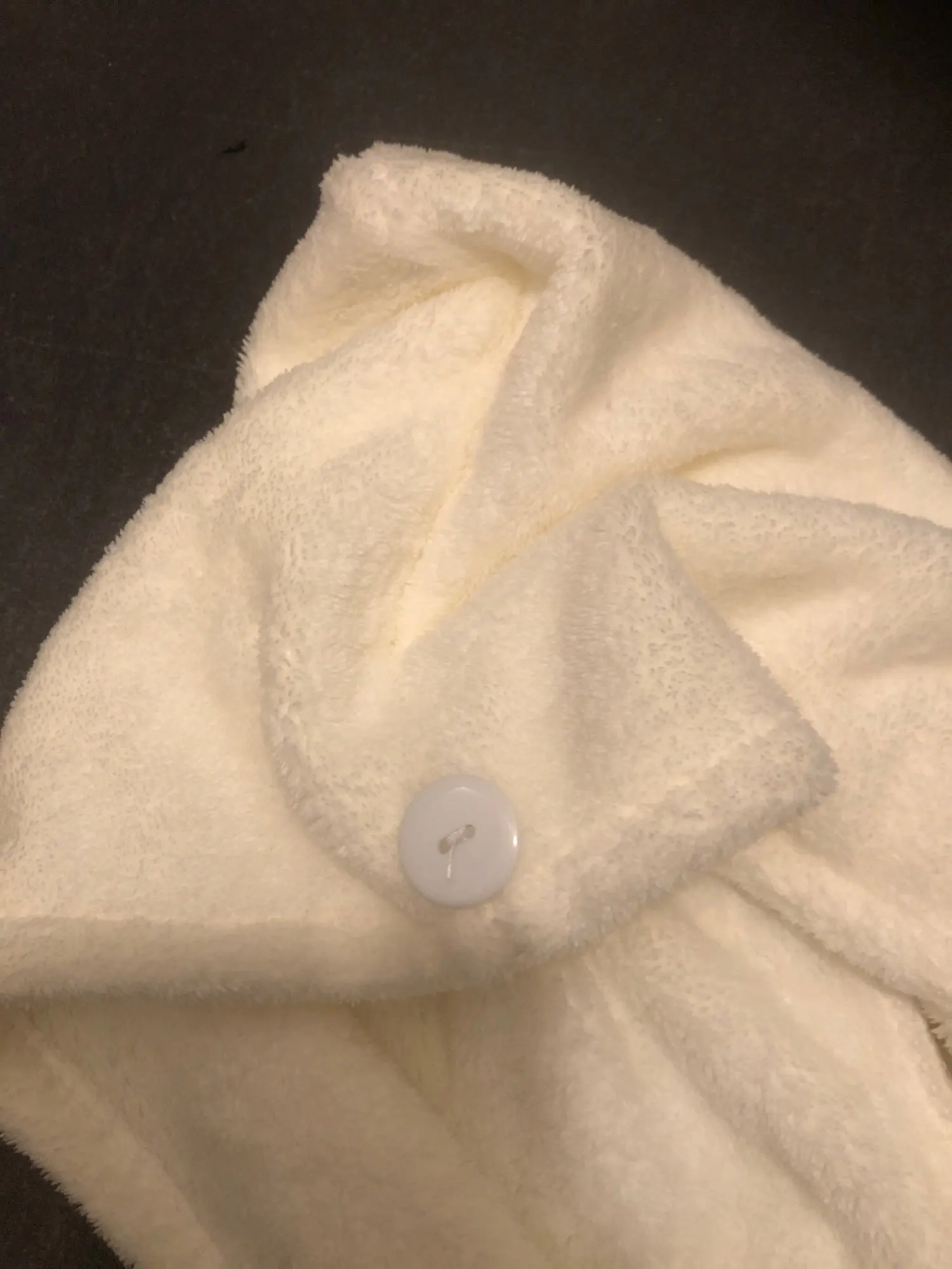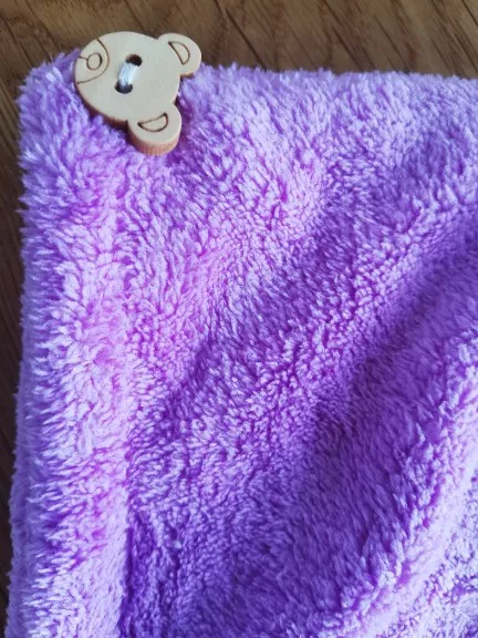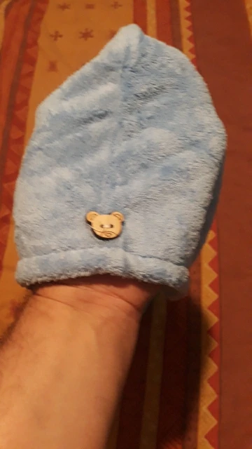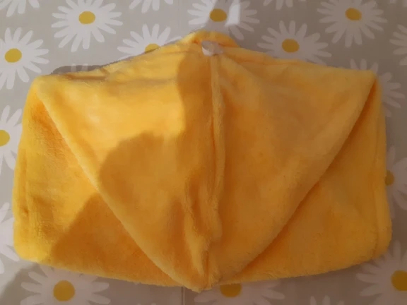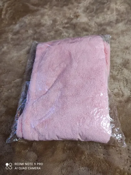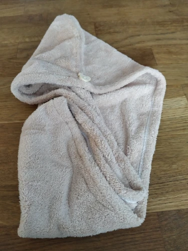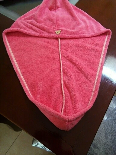 Полотенце пришло без пуговицы, но это не большая проблема. По размеру маловато на длинные волосы, хотелось бы чуточку побольше. Но за такую стоимость нормально.
