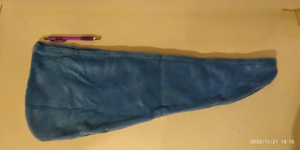 Быстро прибывает в течение 2 недель, сконструирован с другими товарами от других поставщиков. Размер больше 60x25 см. Красивый материал-губка, потому что я проверил ее в резервуаре с водой, и он хорошо впитывается. В 2-ом отзыве я сообщу вам эффективность после тестирования на волосах.
