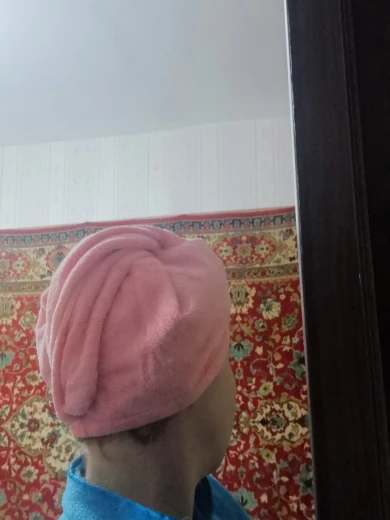 Очень яркое, красивое, удобно пользоваться, с головы не падает. Подойдет для волос немного ниже плеч. Если волосы сильно густые или длинные, то не влезут наверно. Но! Есть один нюанс: оно практически не впитывает влагу и волосы не особо сохнут )) Придумала выход: сначала закрываю волосы небольшим обычным хб полотенчиком, а сверху уже одеваю это, чтоб держалось все вместе. Так получается норм.