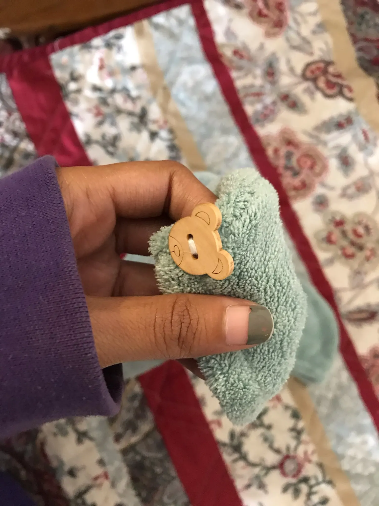 Он прибыл вовремя. У него есть деталь медведя вместо кнопки. Цвет очень красивый и мягкий и выглядит пухлым. Это немного меньше, чем они продают их в Mercadona, но я думаю, что все будет хорошо, я прокомментирую, когда попробую. Не нужно было связываться с продавцом