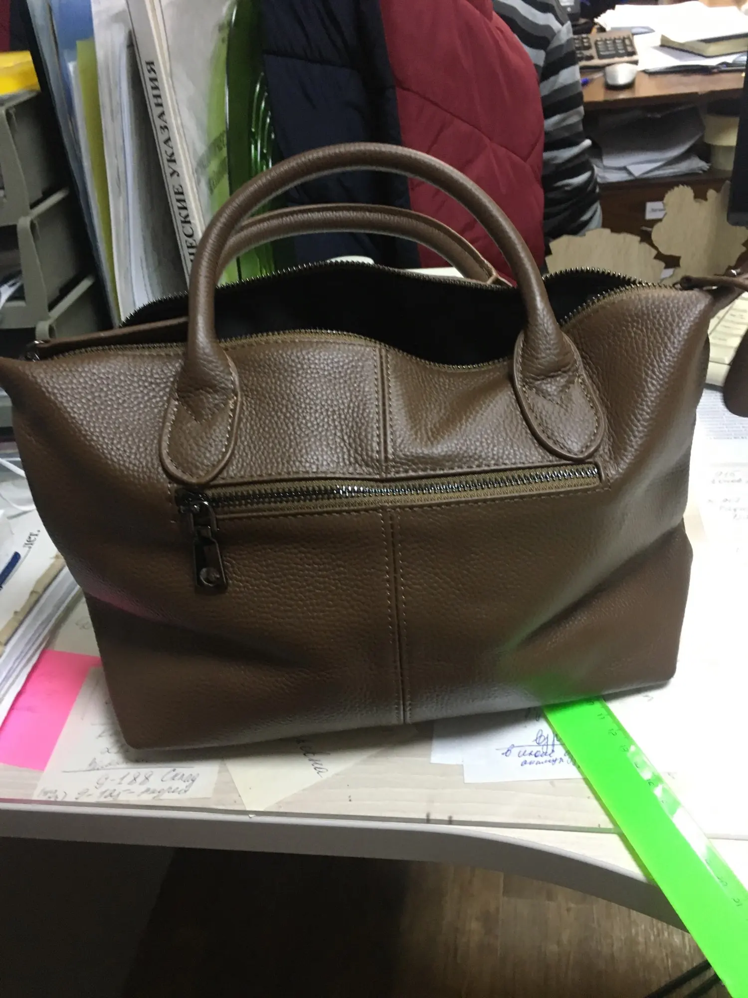 сумка замечательная! настоящая кожа. сделана качественно, добротно. производит впечатление дорогой и стильной вещи! доставили в очень короткий срок. все идеально упаковано, не помялось. я сразу ее поменяла на старую. вмещается внутрь очень много вещей.