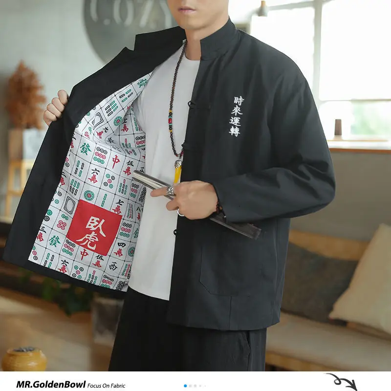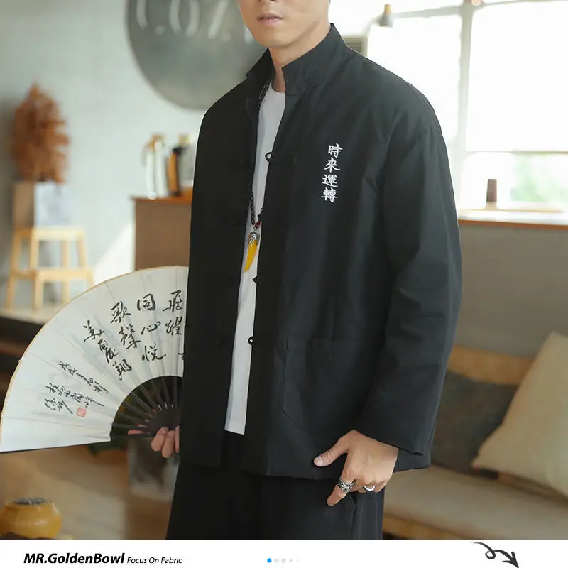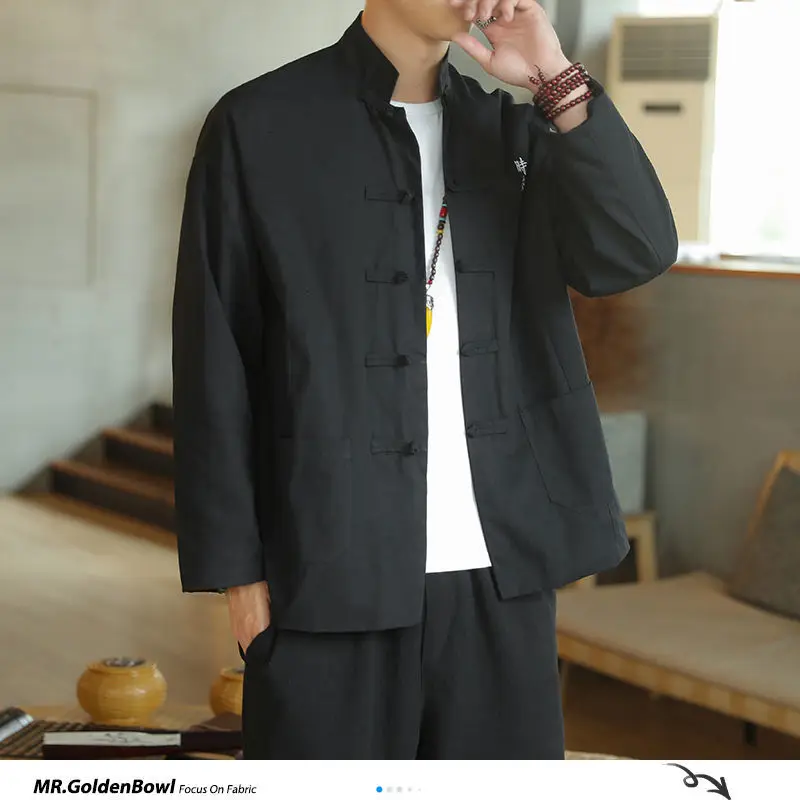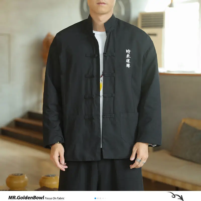 Китайская мужская Черная куртка MrGoldenBowl, осенние мужские куртки с длинным рукавом, пальто 2020, винтажная мужская куртка на пуговицах, пальто 5XL