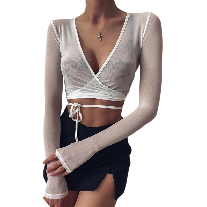 Кардиган женский сетчатый прозрачный, дышащий, с длинным рукавом, на шнуровке, на лето, 2020