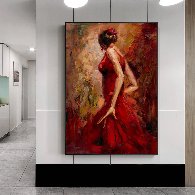Современная танцующая девушка в красном платье холст живопись абстрактная плакаты-портреты и принты настенное искусство картины для украшения дома