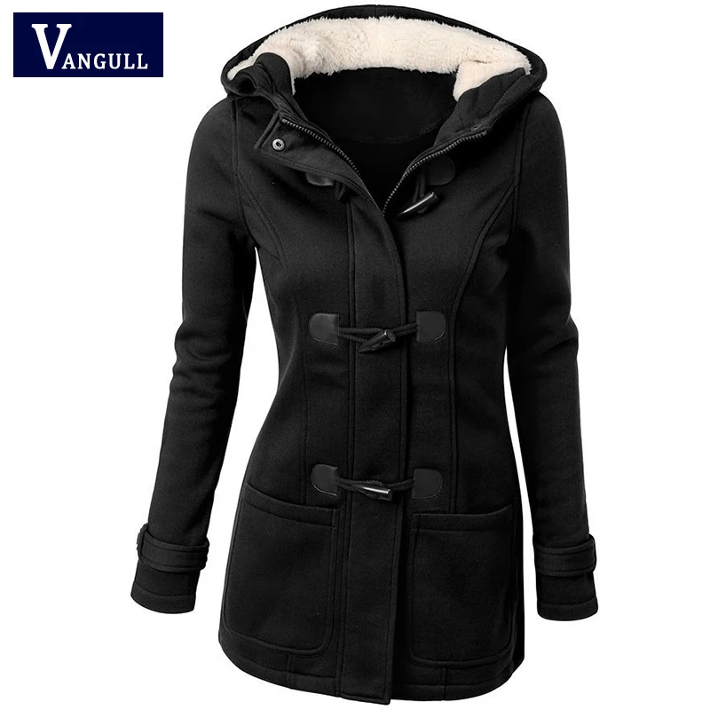 Vangull Женская куртка с капюшоном и пуговицами из рога, Тонкая Повседневная парка в стиле Харадзюку, Осень-зима, теплое мягкое Женское пальто на молнии, новинка 2020
