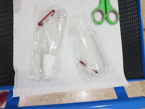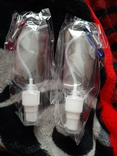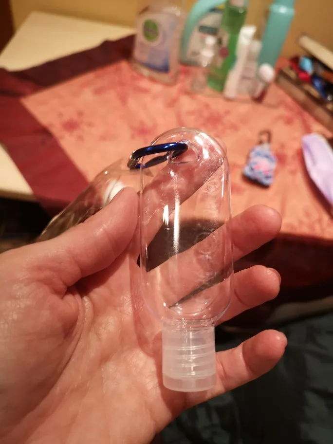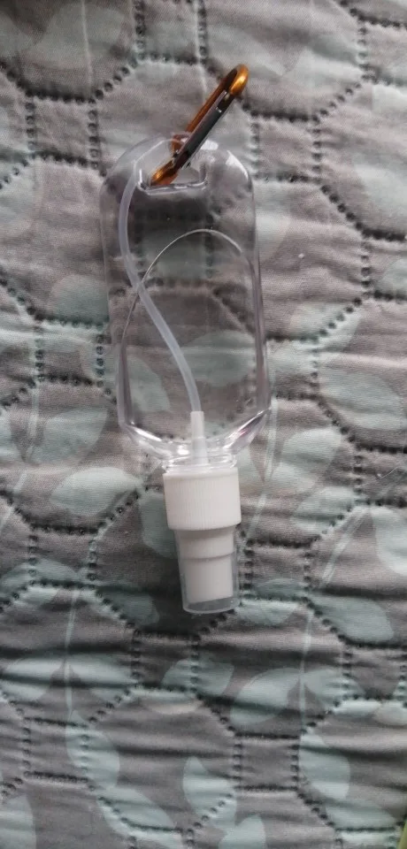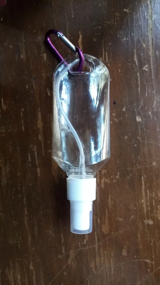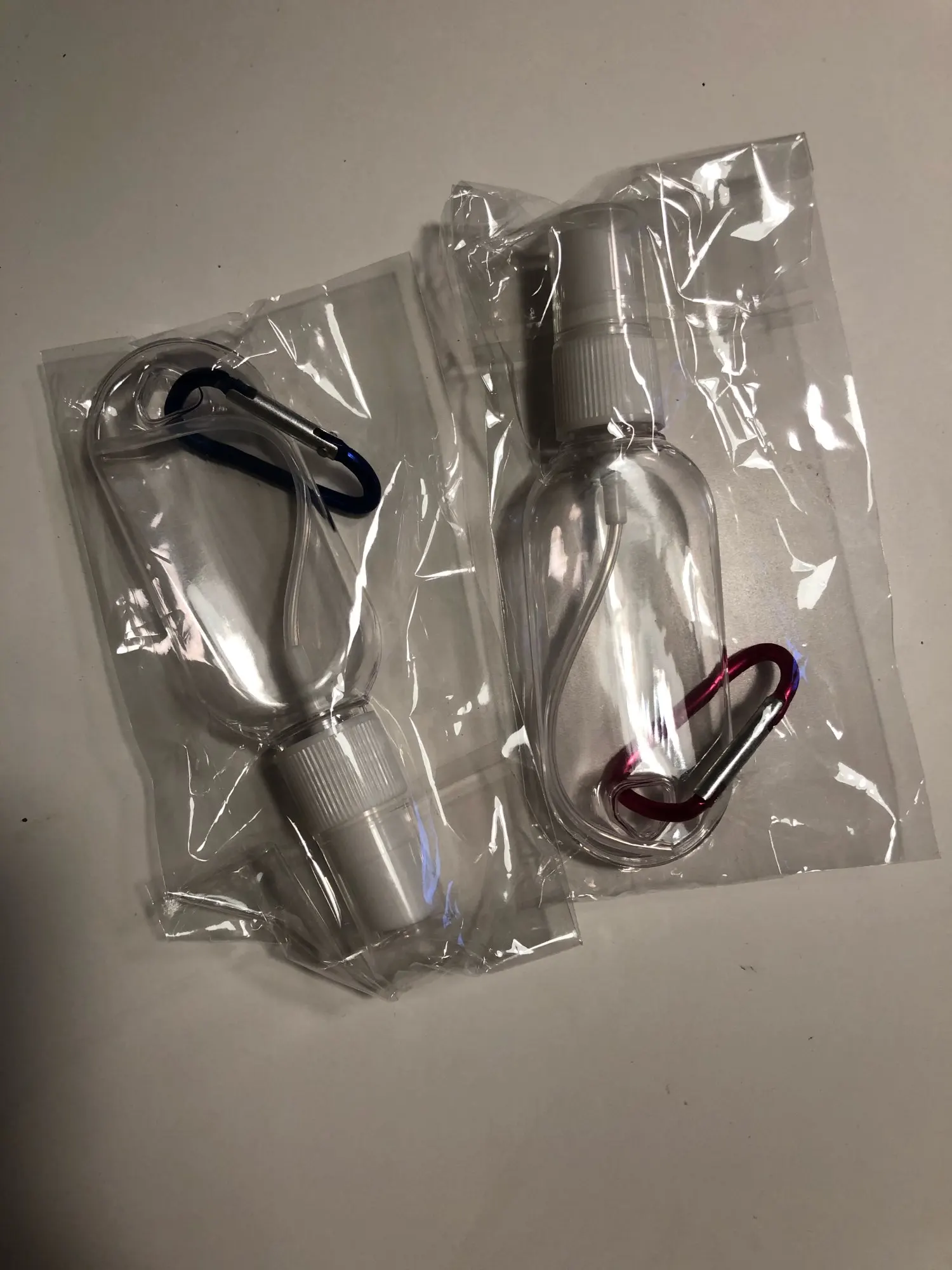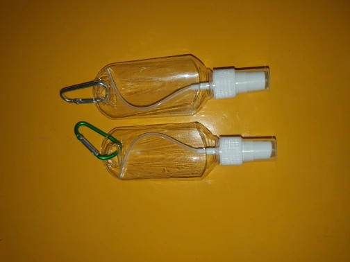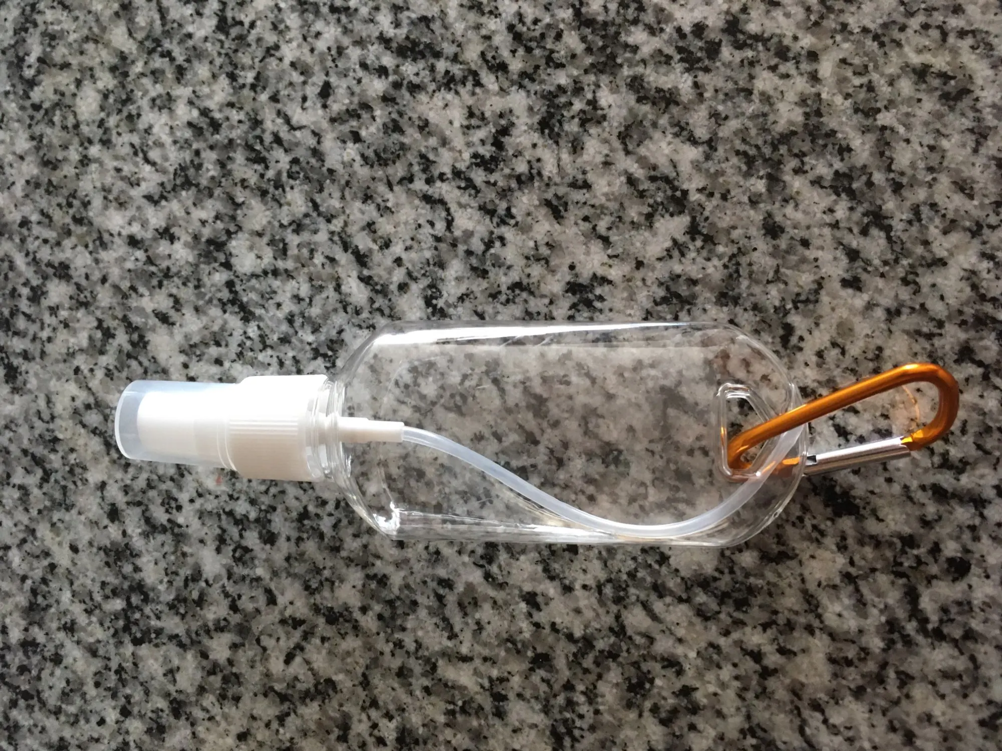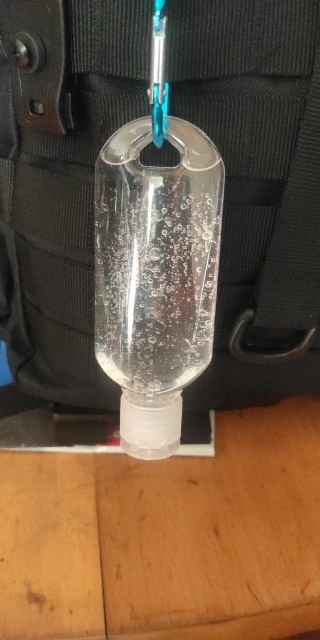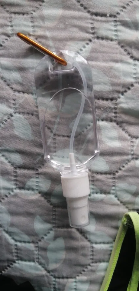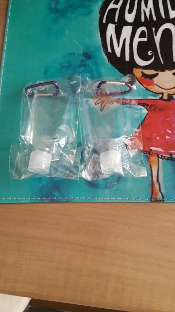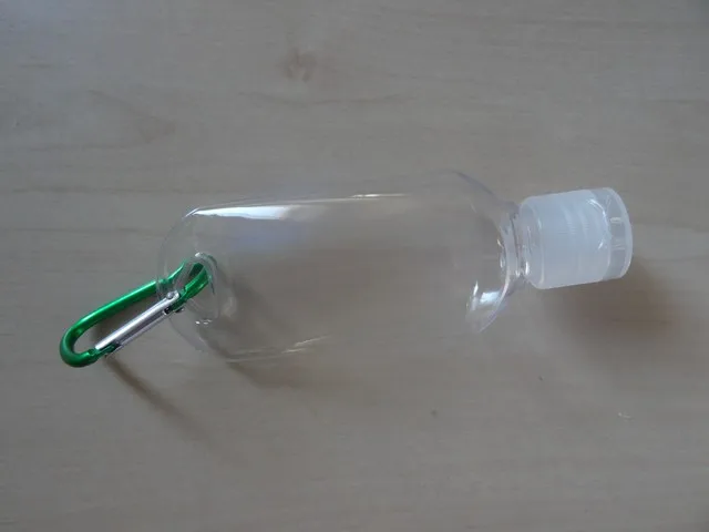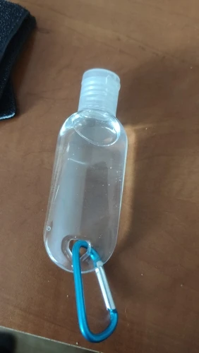 Botellita rellenable. El tapon no es muy fuerte, posiblemente se parta el flexo. El mosqueton es flojito...lo tienes que ajustar o se queda abierto