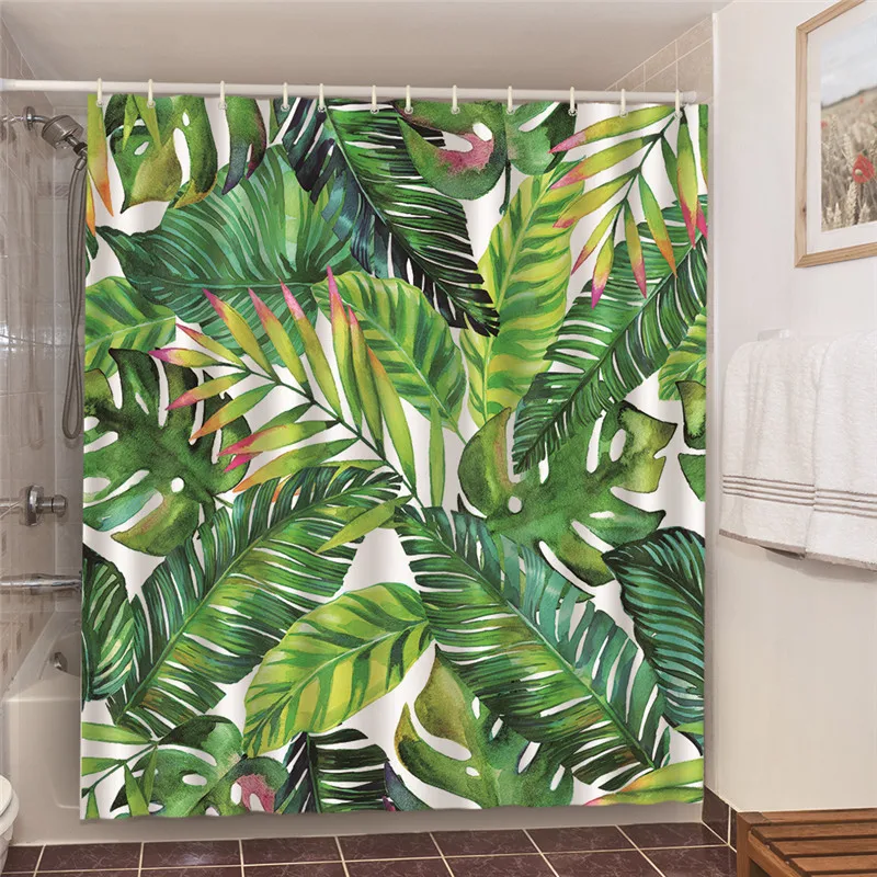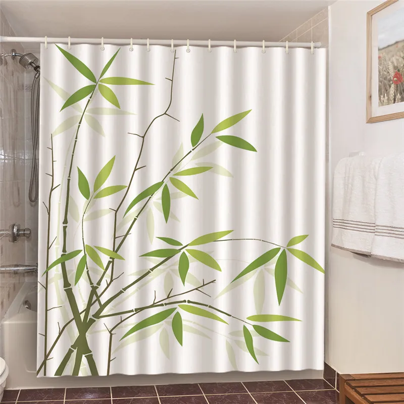 Водонепроницаемые шторы для ванной, зеленая простая декоративная занавеска для душа с листьями из бамбука, ручная роспись, аксессуары для декора ванной комнаты