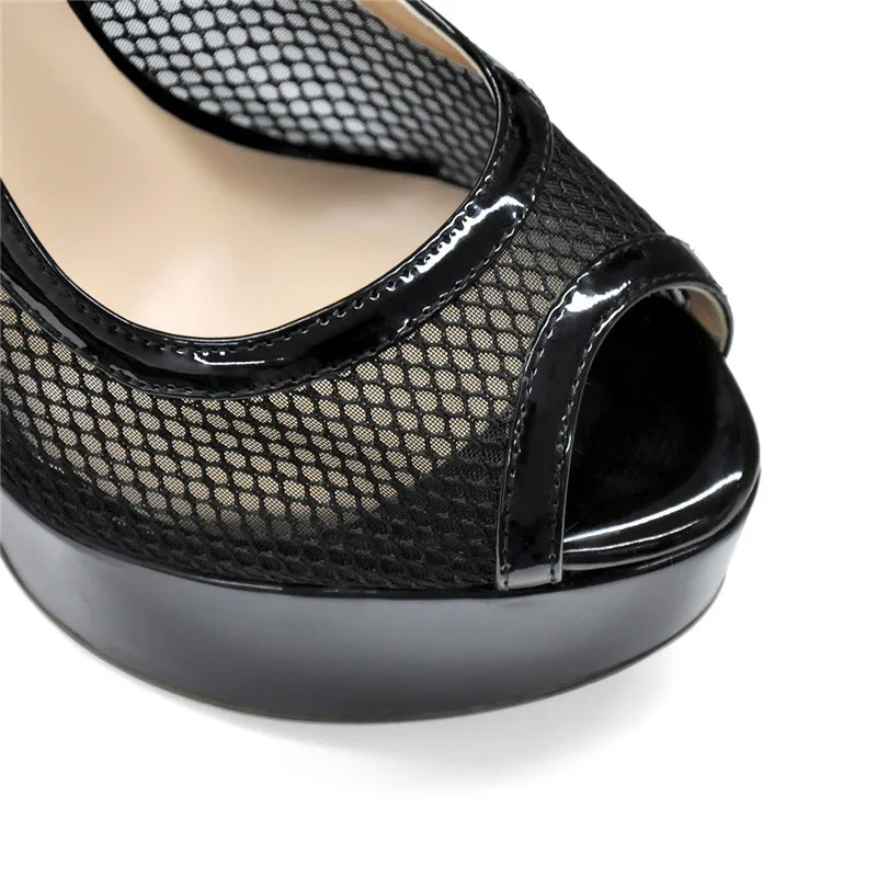 Onlymakerженские сетчатые туфли на платформе с открытым носком; Сандалии на шпильке; Вечерние туфли без застежки на высоком тонком каблуке; Цвет красный, черный; Большие размеры