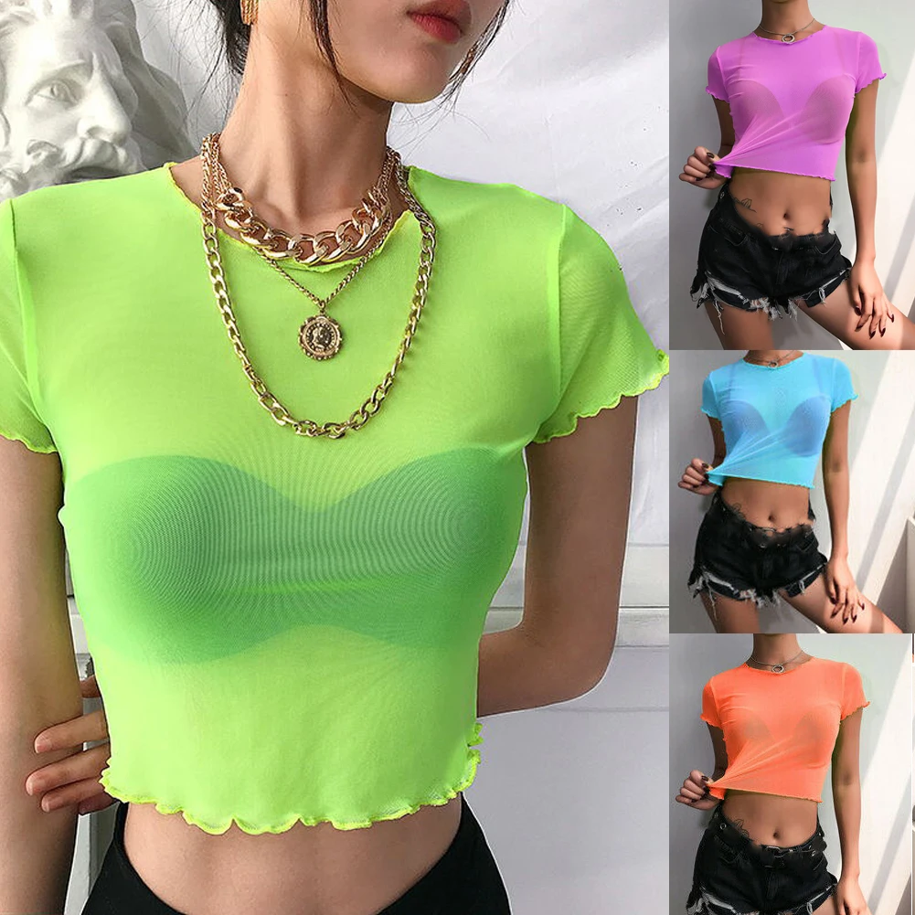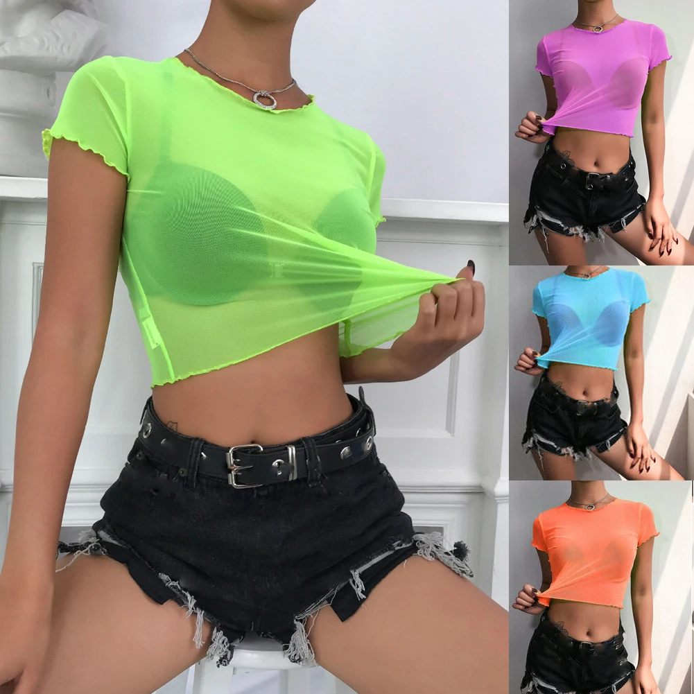 Новинка 2020, женская модная сексуальная тонкая прозрачная Сетчатая футболка, Женская Повседневная Верхняя одежда