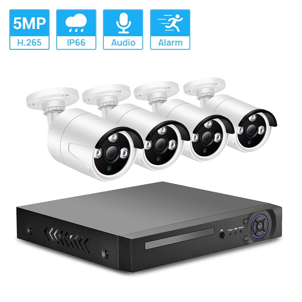 -1 x 4CH 5MP POE NVR-4 камеры POE 2 МП/5 Мп-4x20 м сетевой кабель питания для камеры-1 x Блок питания для NVR-1 х Мышь для NVR-Руководство пользователя-1 шт.-4 х водонепроницаемый разъем для кабеля-1T/2 ТБ HDD опционально