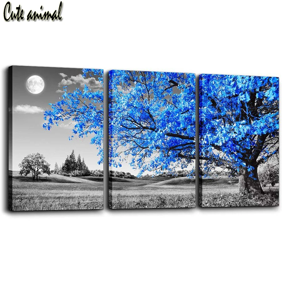 3 шт. diy Алмазная картина голубое дерево Луна Пейзаж Алмазная вышивка полный квадратный Круглый Алмаз Мозаика Стразы живопись