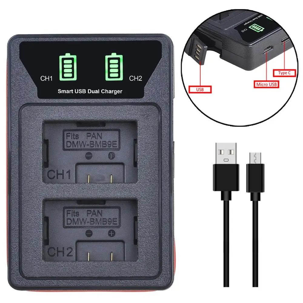 Pickle Power DMW-BMB9 DMW-BMB9E аккумулятор + светодиодный встроенный USB двойное зарядное устройство для Panasonic фз45 FZ47 FZ48 FZ60 FZ62 FZ70