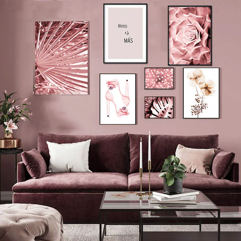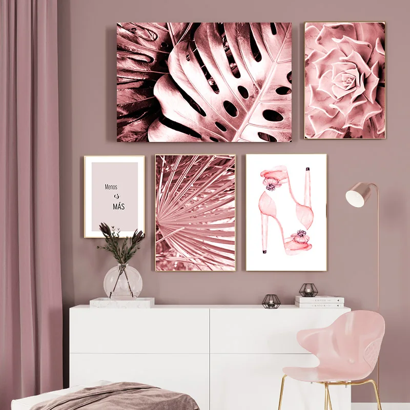 Фотообои с рисунком в виде розовых телесных цветов и пальмовых листьев