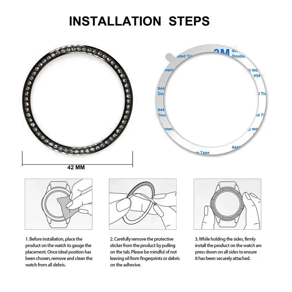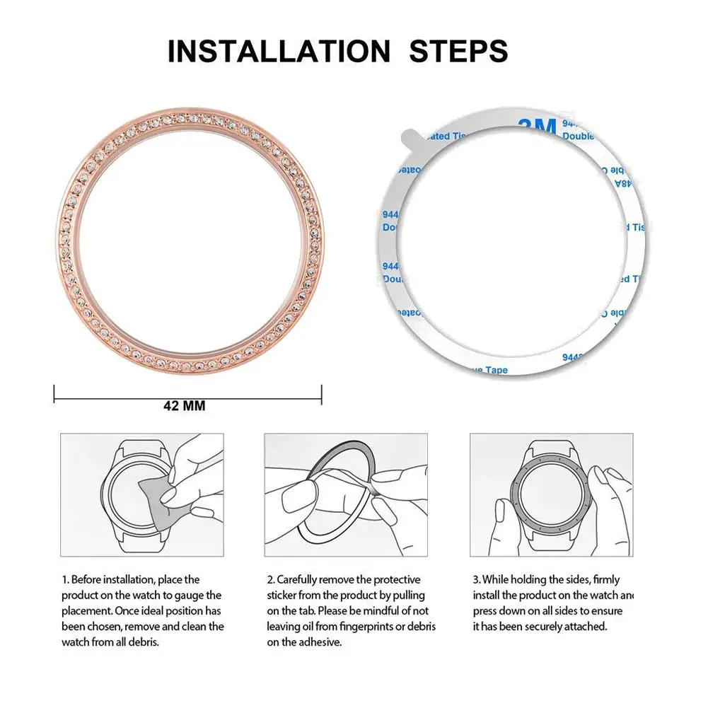 Название: ободок для Samsung Galaxy Watch 42/46 ммМатериал: алюминиевый сплавВес: около 2,85 гЦвет: черный, серебристый, розовое золотоУпаковочный лист:1 * Рамка1 * сухой и влажный мешок
