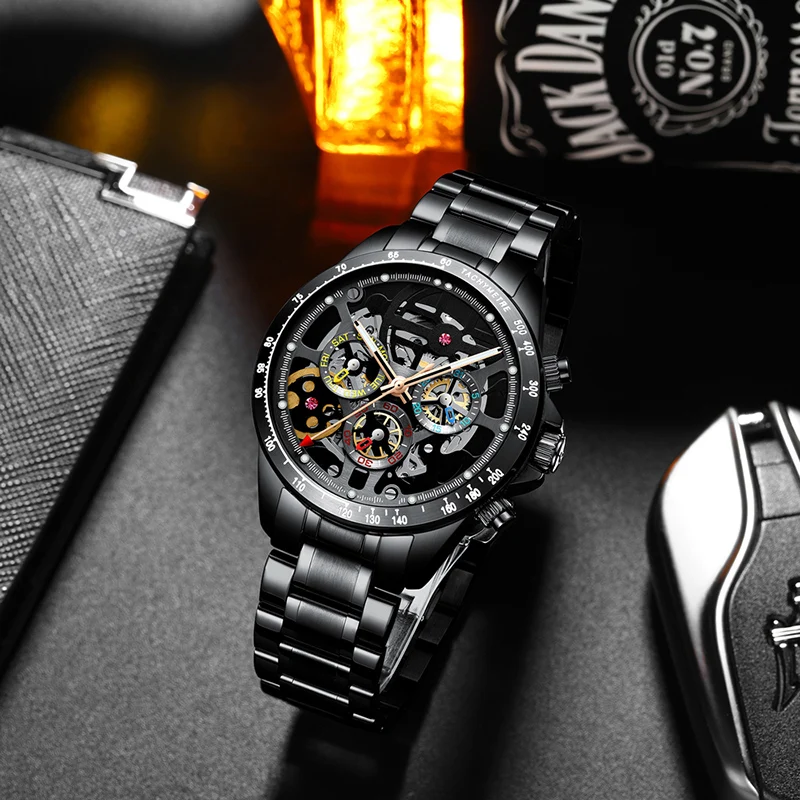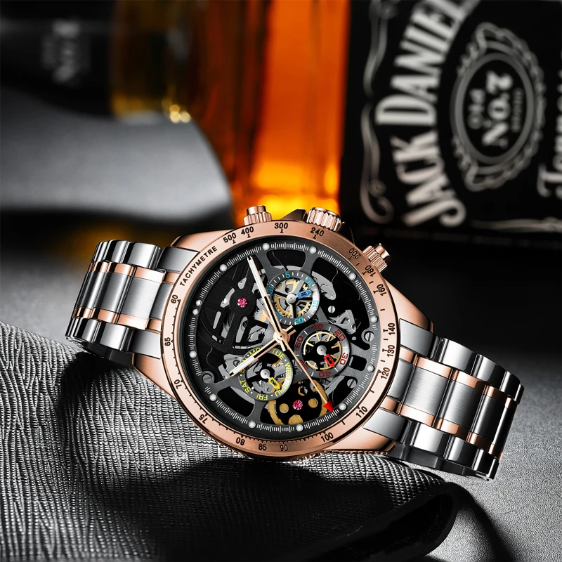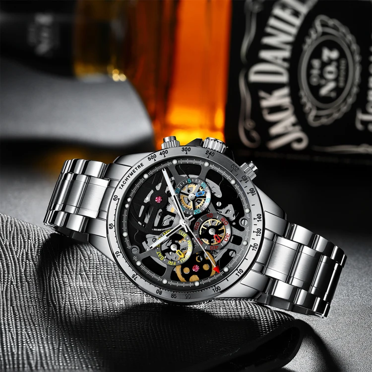 Часы-скелетоны Мужские механические, из нержавеющей стали