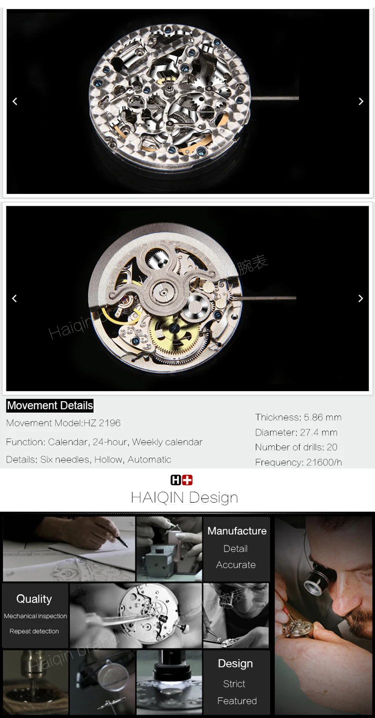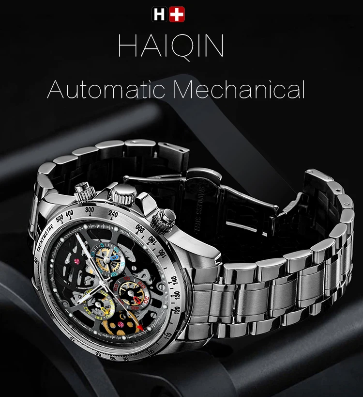 Часы HAIQIN мужские, автоматические, механические, водонепроницаемые