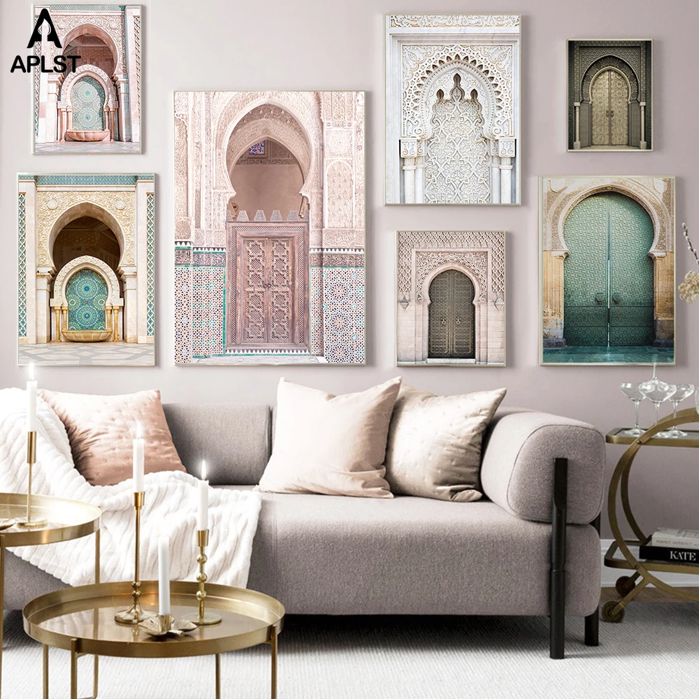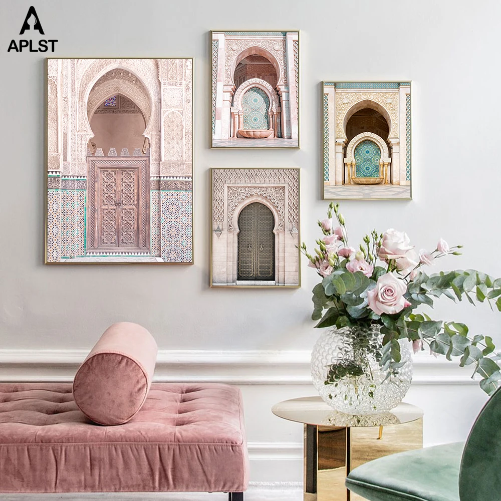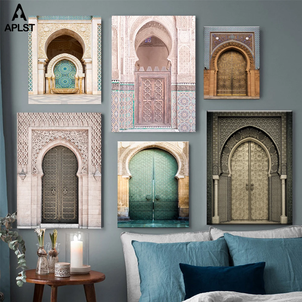 Постер с изображением дверей исламского Марокко, мусульманская мечеть, религия, дворец Касабланки, винтажная архитектура, Настенная картина