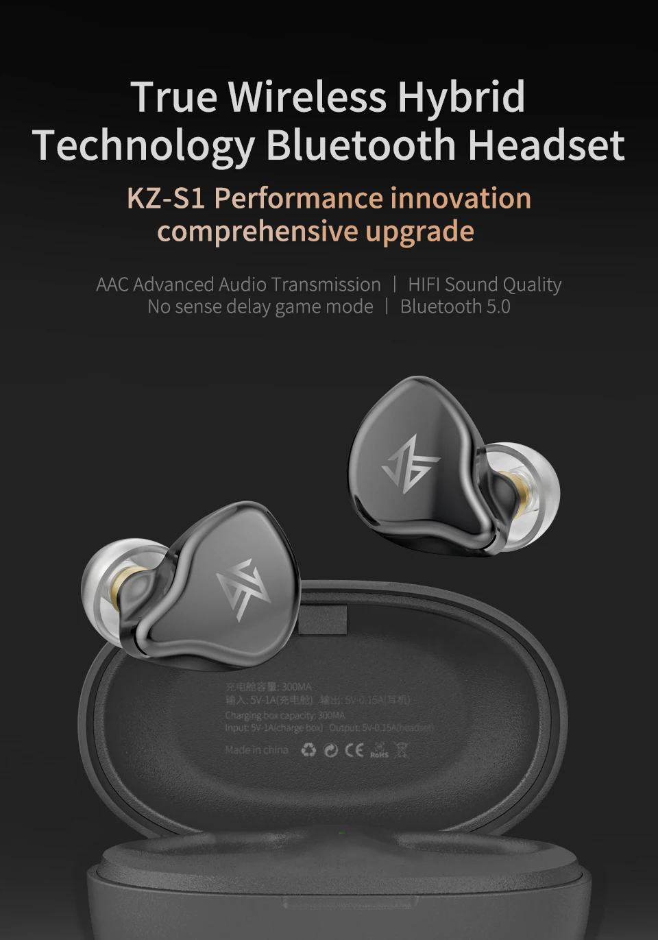 TWS-наушники KZ S1D KZ S1 с поддержкой Bluetooth 5,0 и системой ШПД