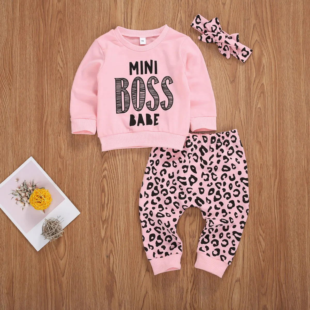 FOCUSNORMОт 0 до 3 лет; Осенние комплекты одежды для маленьких девочек; Пуловер с длинными рукавами и буквенным принтом; Толстовка; Топы; Штаны с леопардовым принтом