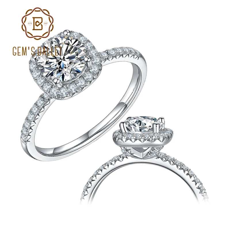Женское кольцо GEM'S BALLET, 1 карат из стерлингового серебра 925 пробы, обручальное кольцо с круглым камнем VVS1