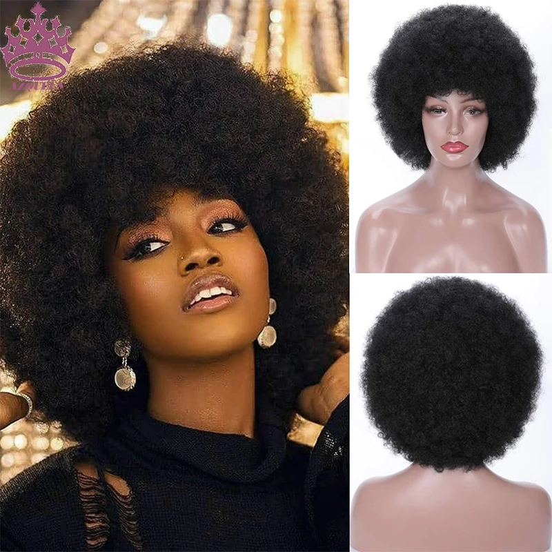 Синтетический афро-парик AZQUEEN, женские короткие пушистые волосы, кудрявые, вьющиеся волосы для вечеринки, для танцев, косплея, с челкой