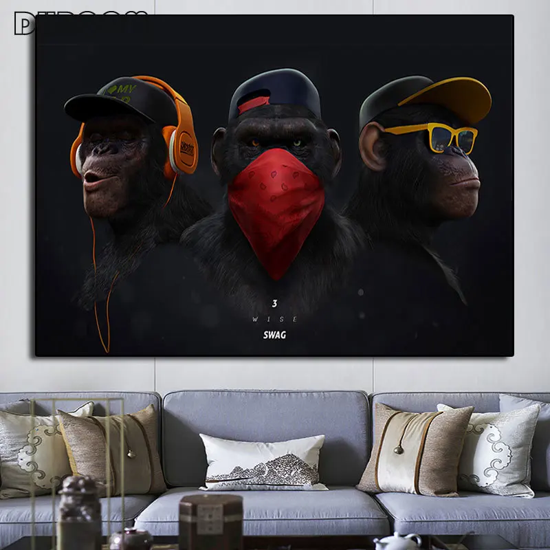 Уличное искусство Бэнкси Граффити постер печать за занавеской холст...