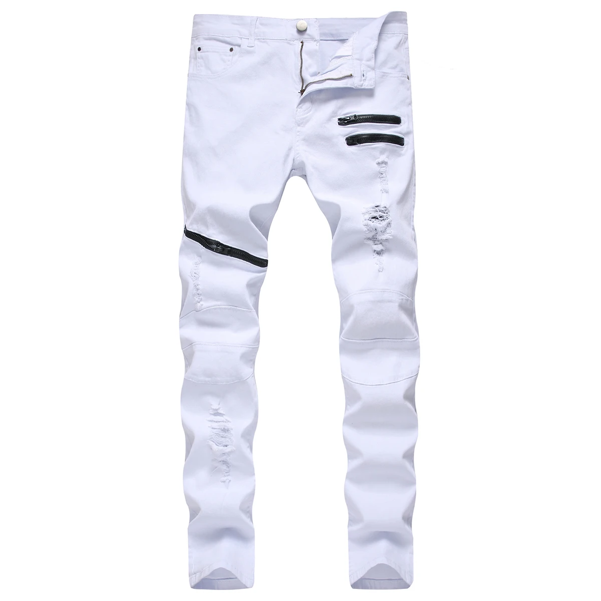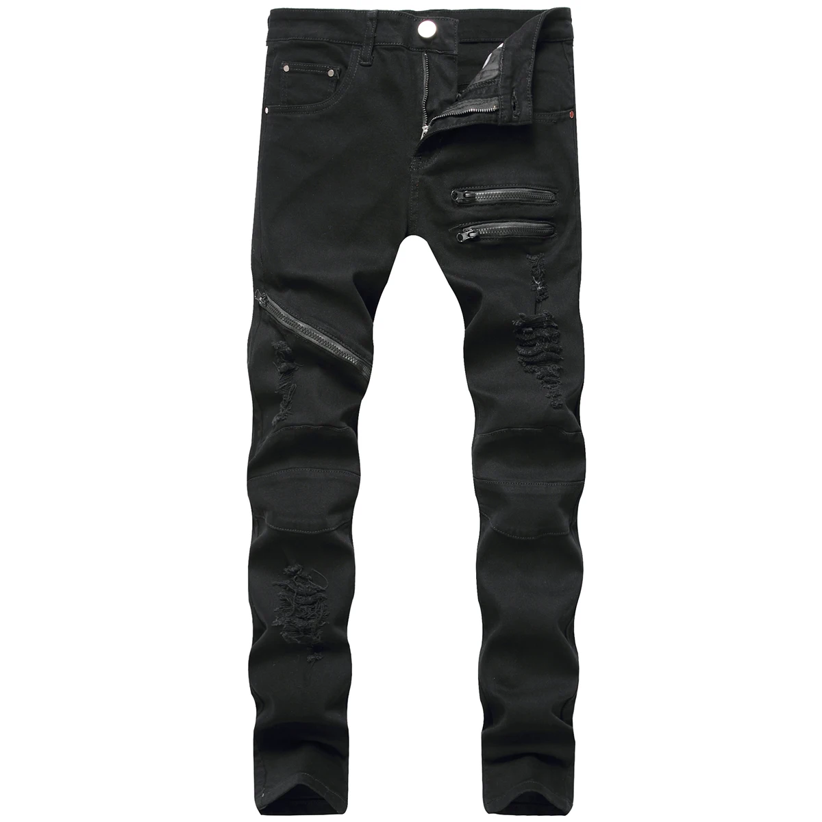 Мужские джинсы на молнии с дырками, рваные Стрейчевые джинсовые брю...