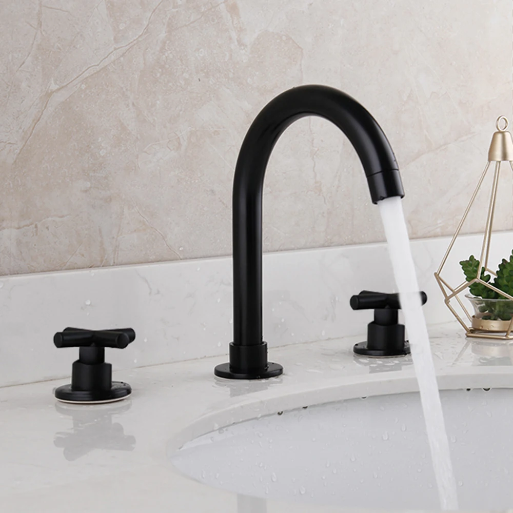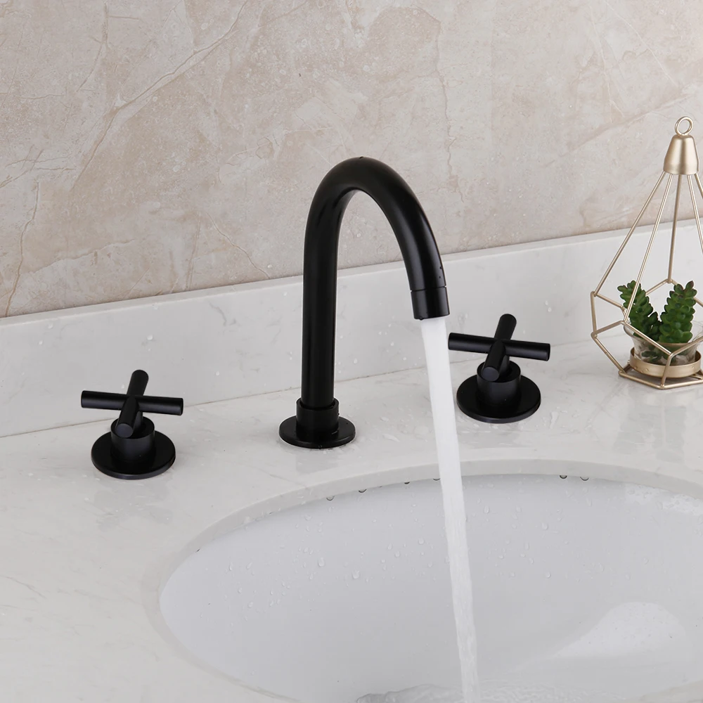 Тип: смесители для раковины/ванныМатериал корпуса смесителя: латуньМатериал носика смесителя: латуньОтделка: матовый черныйСтиль: современныйТип клапана: Керамический клапанУстановка Тип: судноКоличество ручек: 2Установка отверстия: 3Горячая и холодная вода: ДаКлапан В комплекте: Да