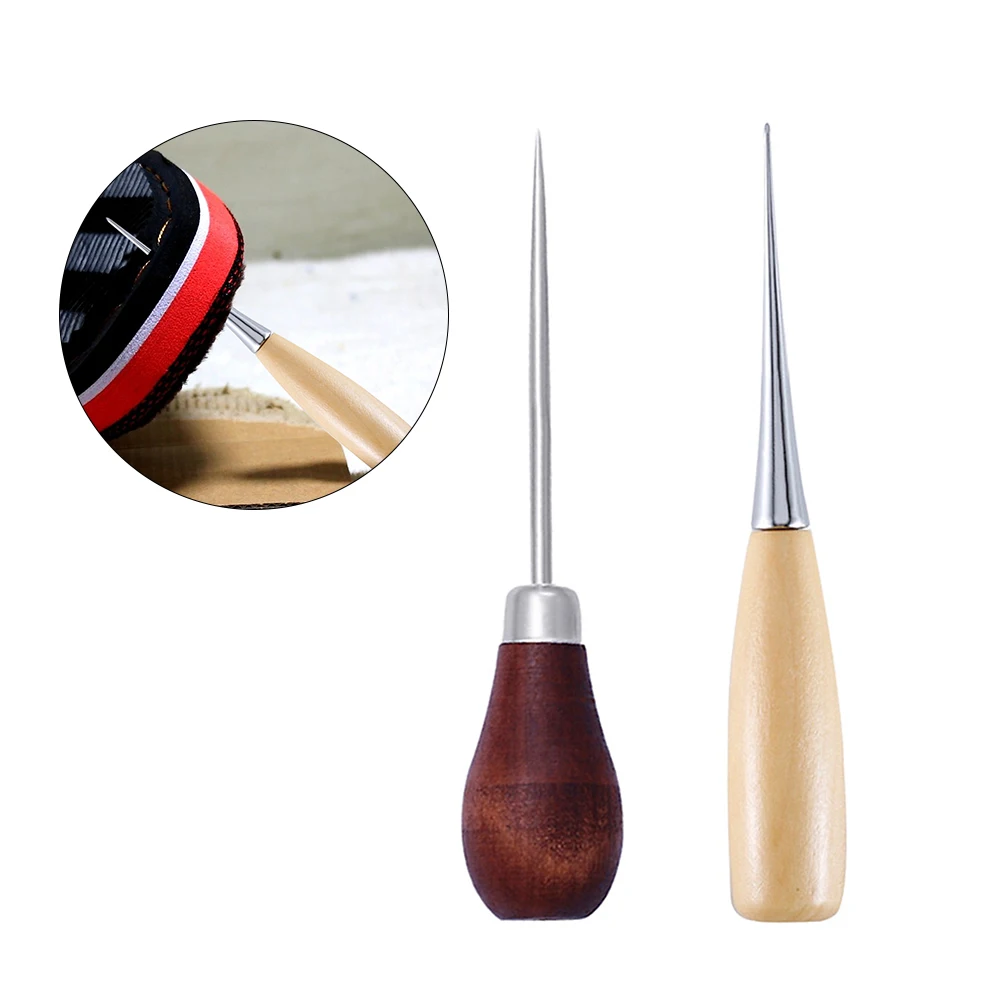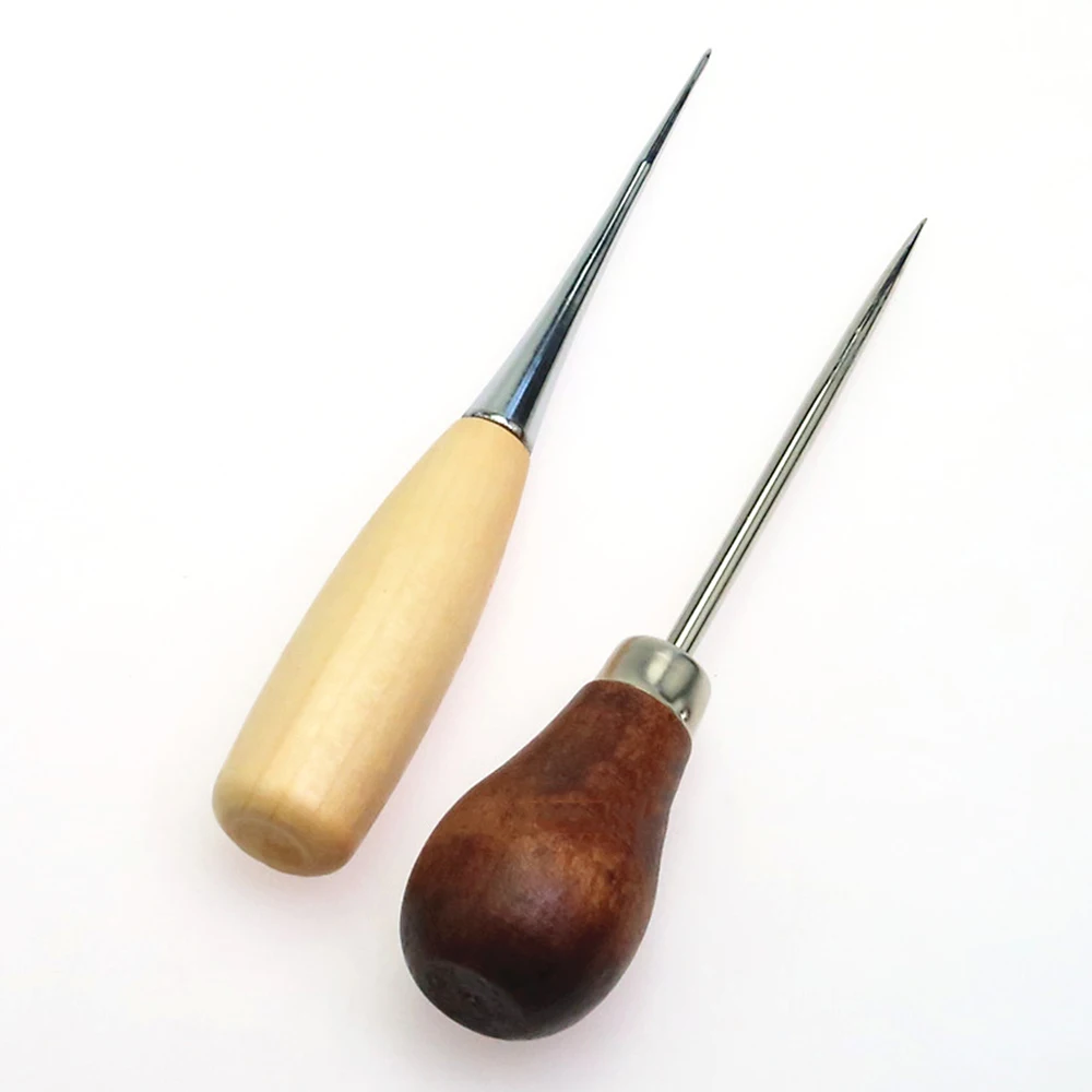 2 шт. Awl деревянная ручка Awl ручной инструмент для вязания прямой конус изогнутый конус иглы тысяча сквозных сверл инструменты кожа ремесло