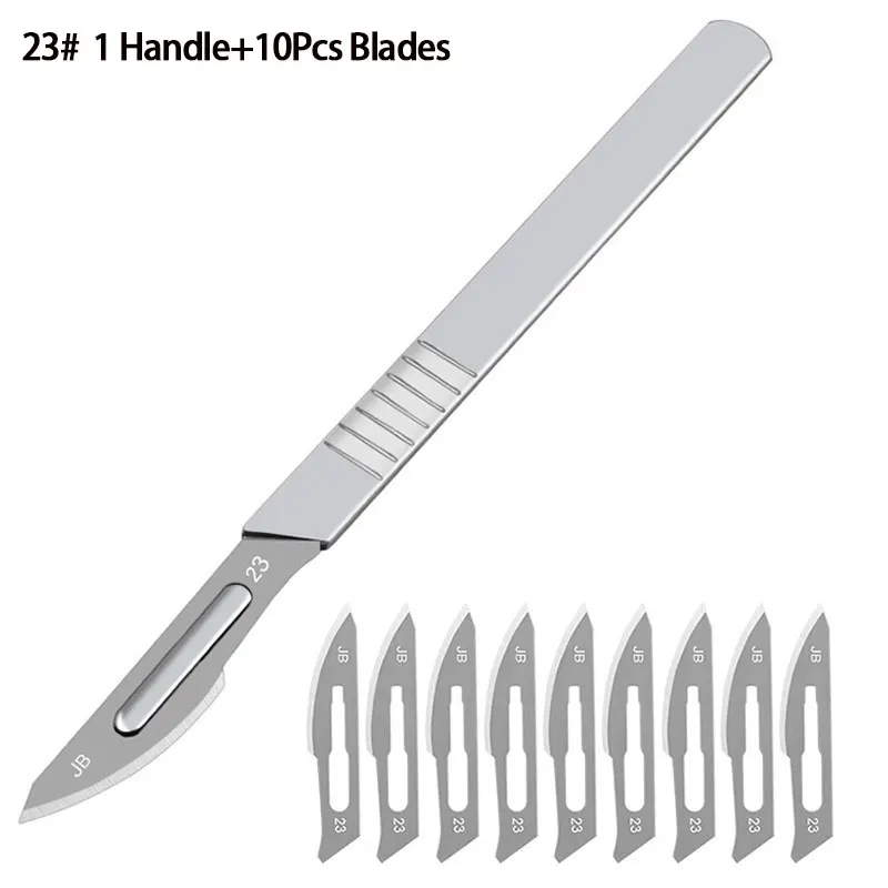 Набор инструментов из нержавеющей стали, 10 шт., лезвия 11 #23 # + ручка 1 шт., хирургические ножи для телефона, компьютера, печатных плат, ручка для резьбы по дереву