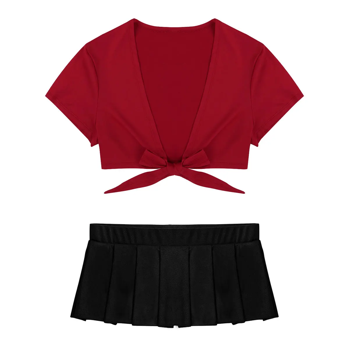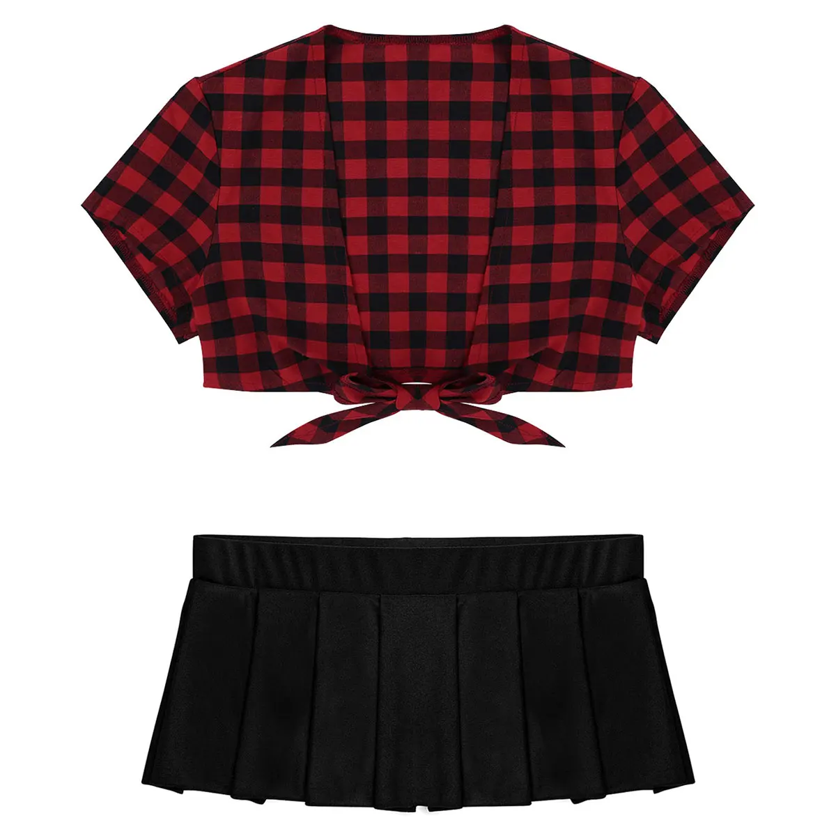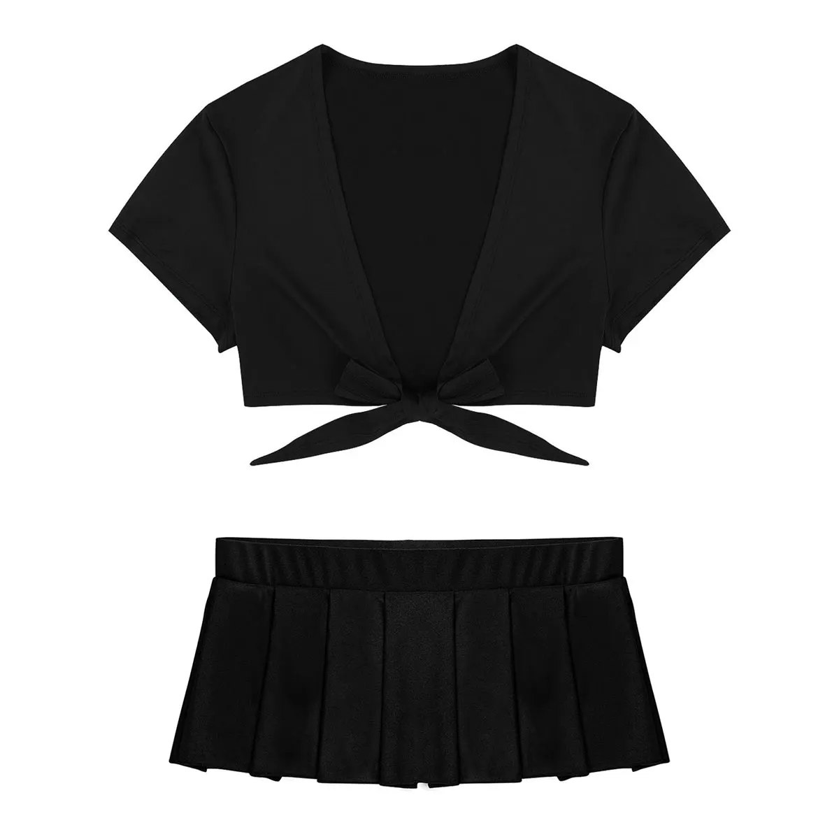Особенности:Женский костюм школьницы, очень привлекательный и привлекательный.Укороченный топ с глубоким V-образным вырезом и короткими рукавами, Завязывающийся спереди. Пара плиссированная мини-юбка с низкой посадкой.Изготовлен из хорошей эластичной ткани, очень мягкий, дышащий и удобный в носке, хорошо подчеркивает изгибы вашего тела.Идеально подходит для игривой ночи дома вечерние, клуба, косплея костюма или повседневной носки.Пожалуйста, сверьтесь с размерами ниже перед заказом. Ручная или машинная стирка в холодной воде.