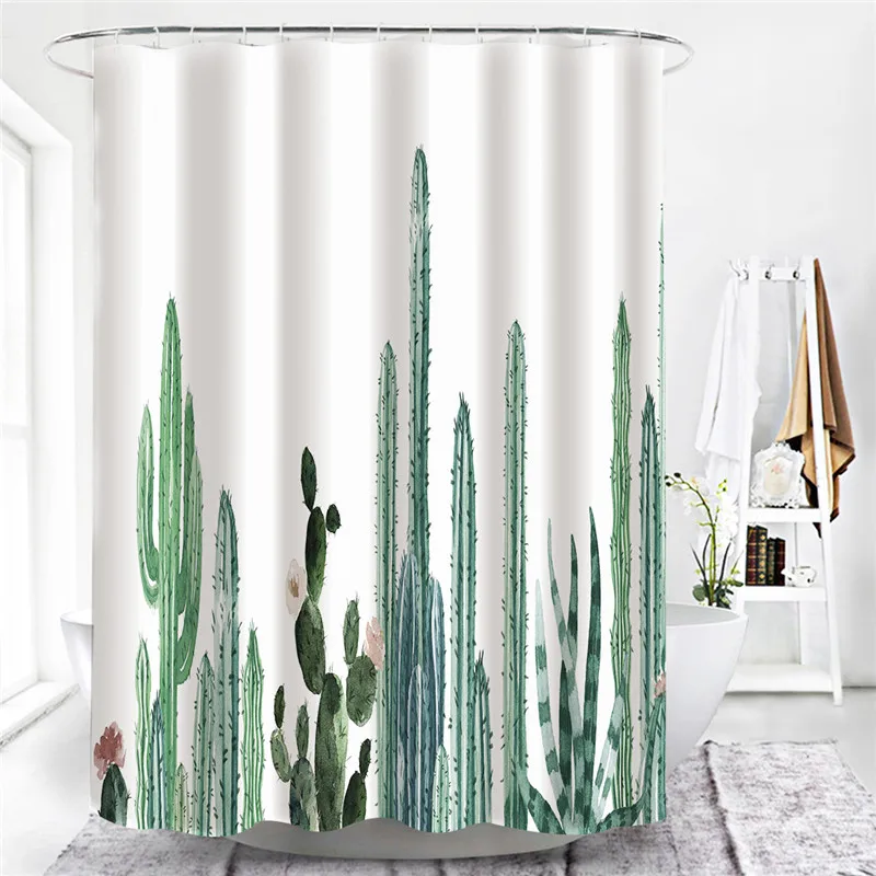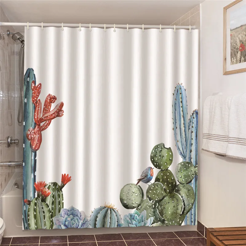 Водонепроницаемая занавеска для ванной из полиэстера с изображением кактуса