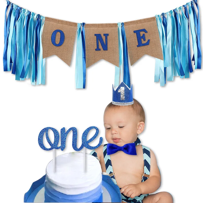 Детские украшения на 1-й день рождения для мальчиков, высокий стул,...