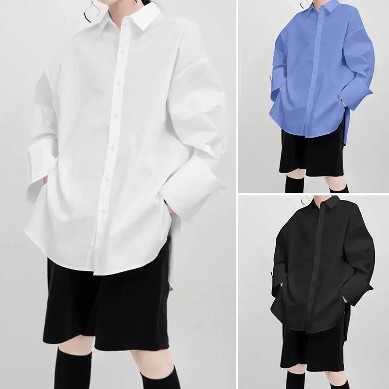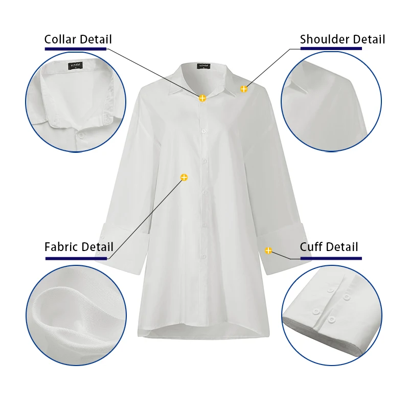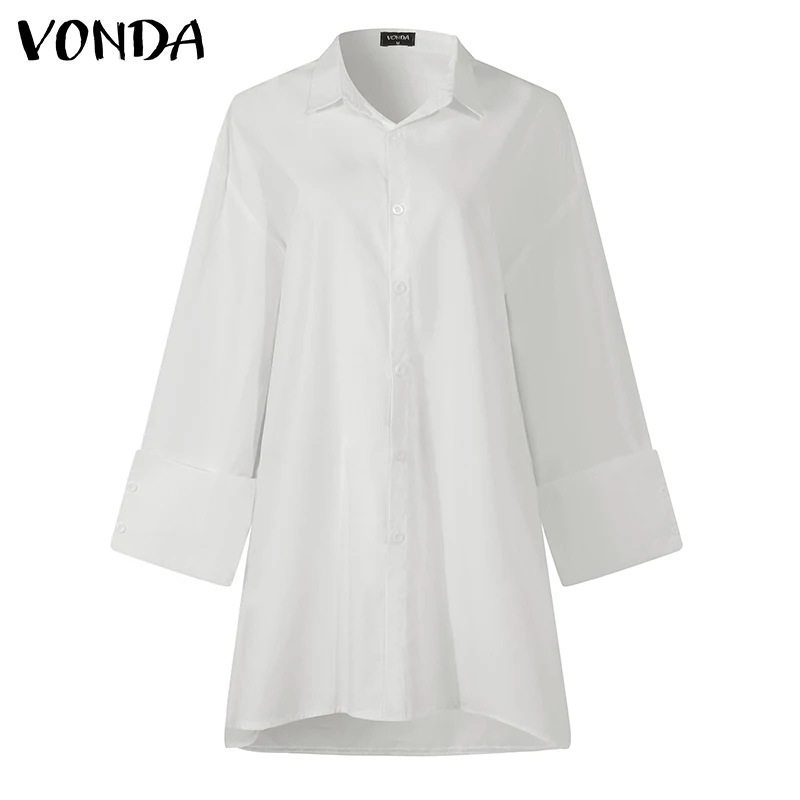 Женские белые рубашки VONDA, осень 2022, Повседневная Блузка с рука...