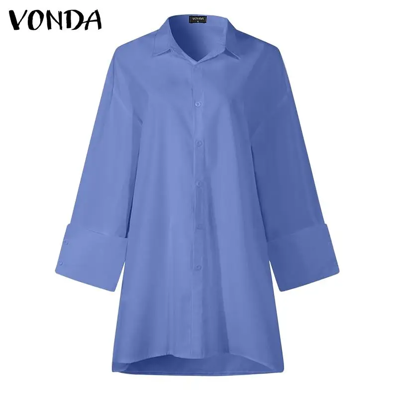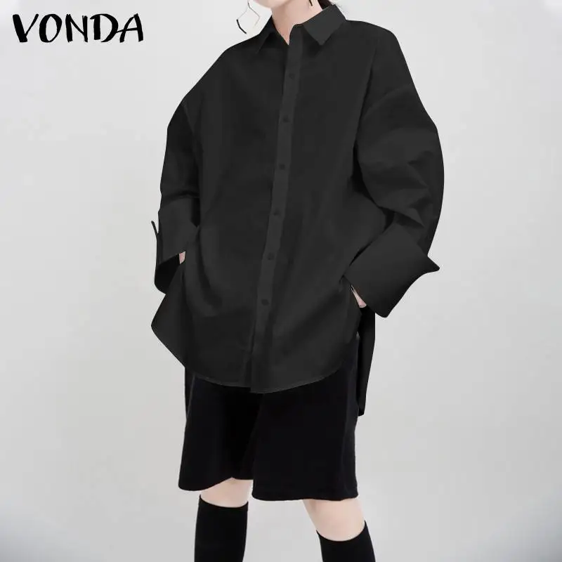 VONDA в винтажном стиле; Женские блузки 2021 модная одежда с длинными рукавами с отворотом повседневные свободные работы Blusas Femininas размера плюс большой манжеты Топы