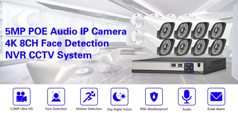 1. Ультра HD 4K дисплей высокой четкости, NVR может поддерживать 8 МП и 4K max, вы можете подключить 720p,1080p,3mp,4mp ,5mp, камеры 8mp & 4k с нашим POE NVR;2. Ультра HD 5MP POE ip-камера, металлический материал, IP66 водонепроницаемый, подходит для внутреннего и наружного использования, надежная Домашняя безопасность;3. Наш NVR и камера поддерживают распознавание лица, воспроизведение лица, обеспечивает ультра высокое разрешение видео наблюдения, обеспечивая максимальную детализацию и четкость доступны;4. Наш NVR и камеры поддерживают расширенное H.265 Сжатие видео, питание через Ethernet, подключи и работай, прост в использовании;5. Все камеры встроены в микрофон, поддерживают аудиозапись, поддерживают режим ночного видения Ultra HD;6. Поддержка обнаружения движения, оповещения по электронной почте, воспроизведения видео и многоязычности;7. Поддержка Android,Iphone,Ipad,PC,VMS,P2P view;8. Удаленный доступ в любом месте, в любое время;