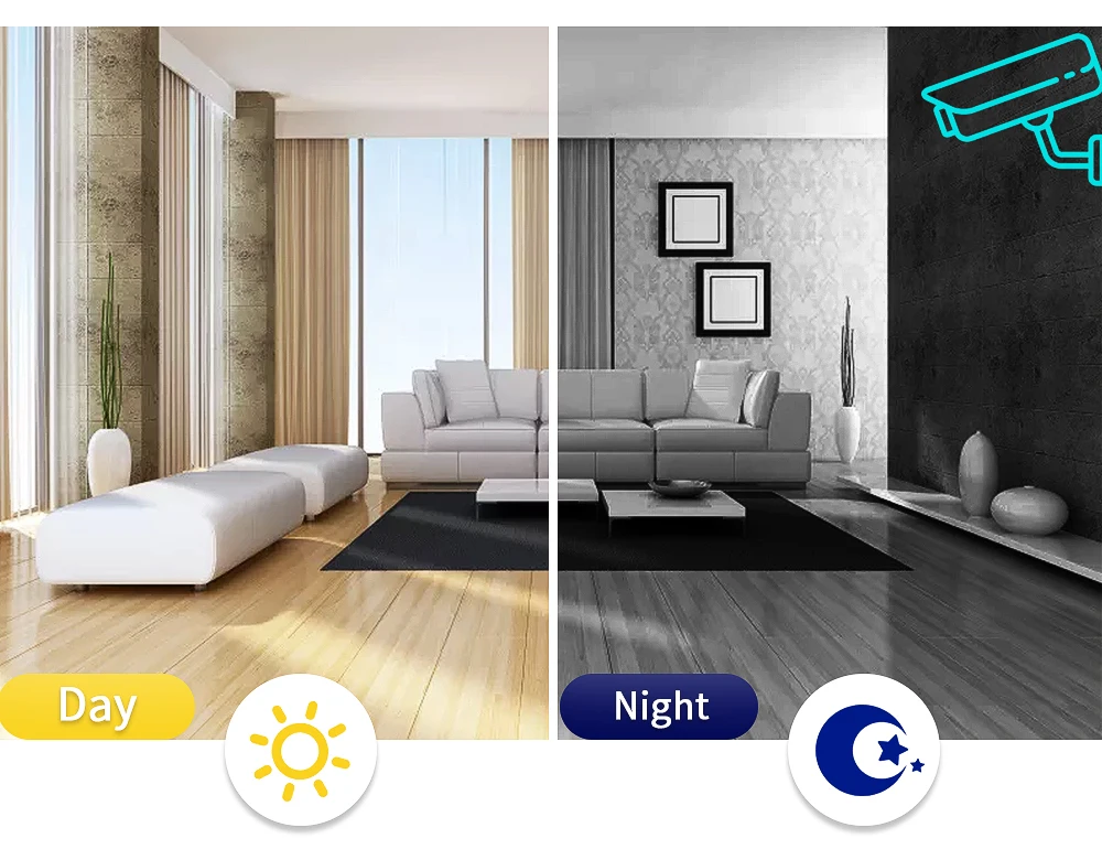 Умный фильтр, отсекающий ИК-спектр автоматически переключается между днем и ночью, цвет toreduce в дневное время и повышает яркость изображения в ночное время. Вы можете получить яркие кадры наблюдения от рассвета до темноты.