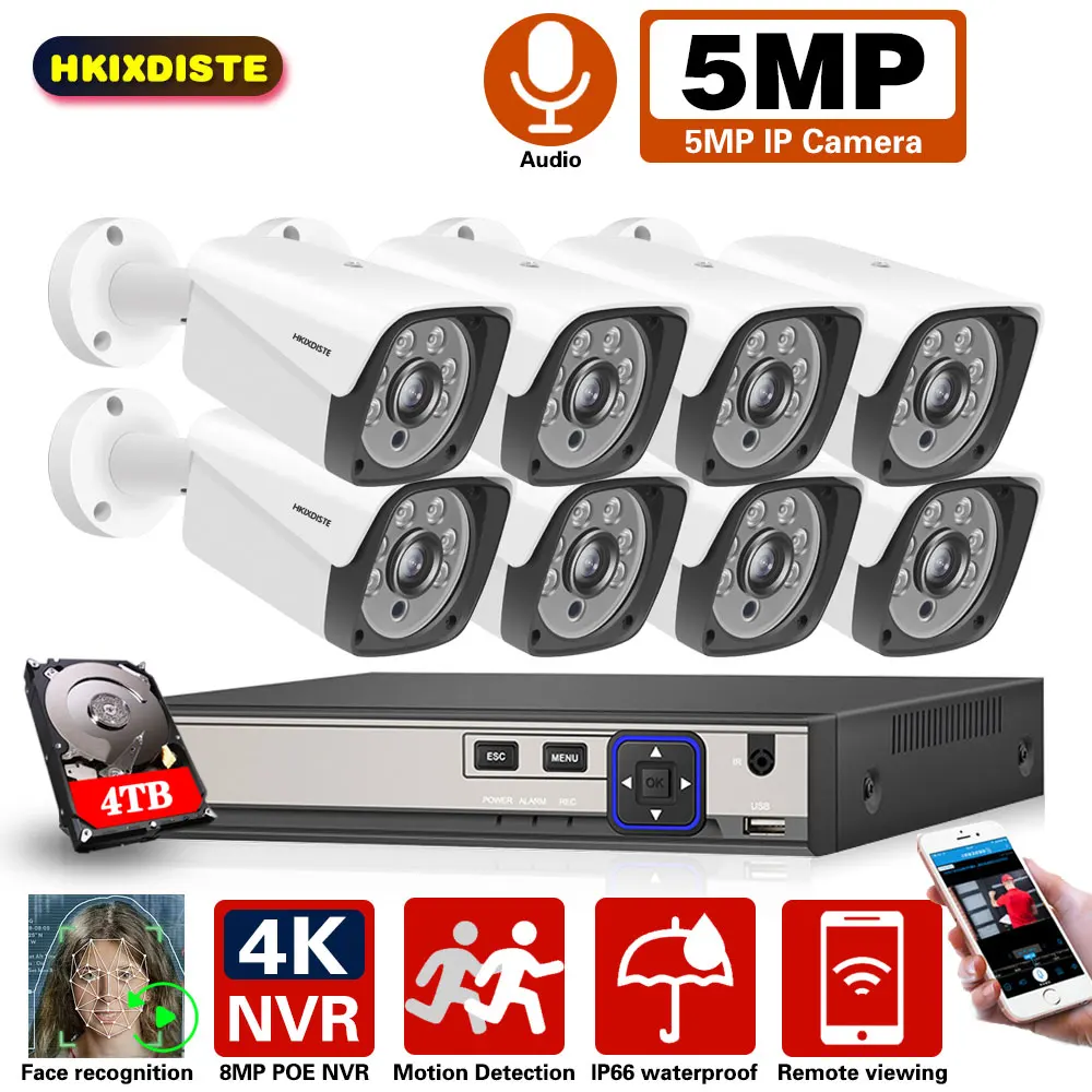 4K распознавание лица 8CH H.265 NVR супер HD 5MP аудио POE Система безопасности камера комплект наружная Водонепроницаемая CCTV наружняя Камера Видеонаблюдения PoE Комплект