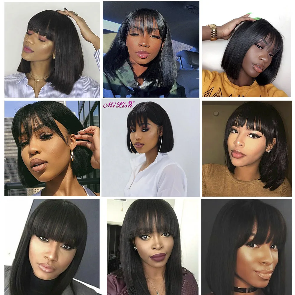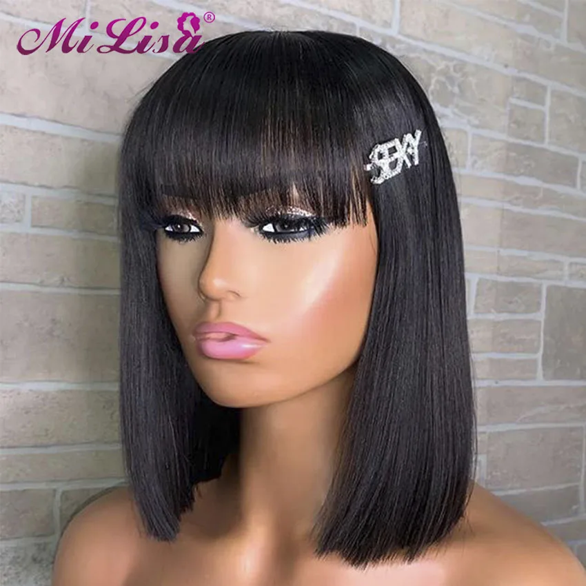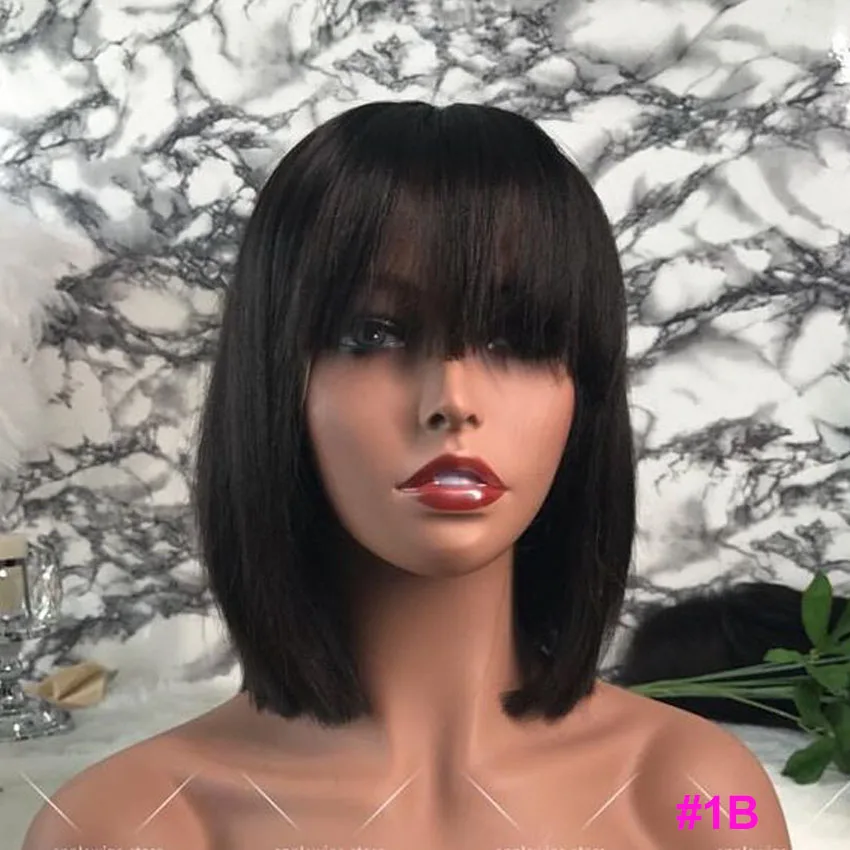 Короткий парик Боб, парики из человеческих волос омбре с челкой, 100% натуральные волосы, бразильский прямой парик, дышащие дешевые парики боб для черных женщин