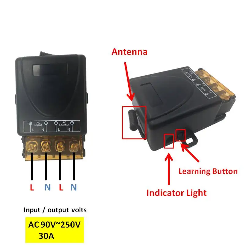 Высокомощный релейный контроллер переменного тока 75 В 250 В 30 А, безопасный беспроводной релейный Приемник 433 МГц и настенный выключатель 86, светильник, котла